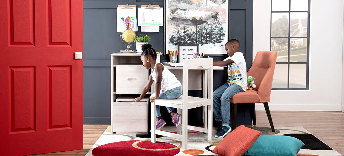 Seating options, like the Stuart Office Chair and Andre Office Chair, are much better than dining room chairs because they have spine support in mind to prevent stiffness and aches from long, hard days of learning new things. Proper support and comfort during learning are not only important for a child’s future posture, but also a key factor in remaining focused. And staying focused is half the battle of learning from home…am I right, parents?