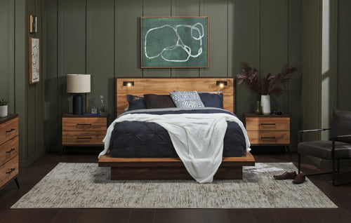 Natural wood, deep hues, and sleek lines come together for a modern retreat with grounded, effortless style.