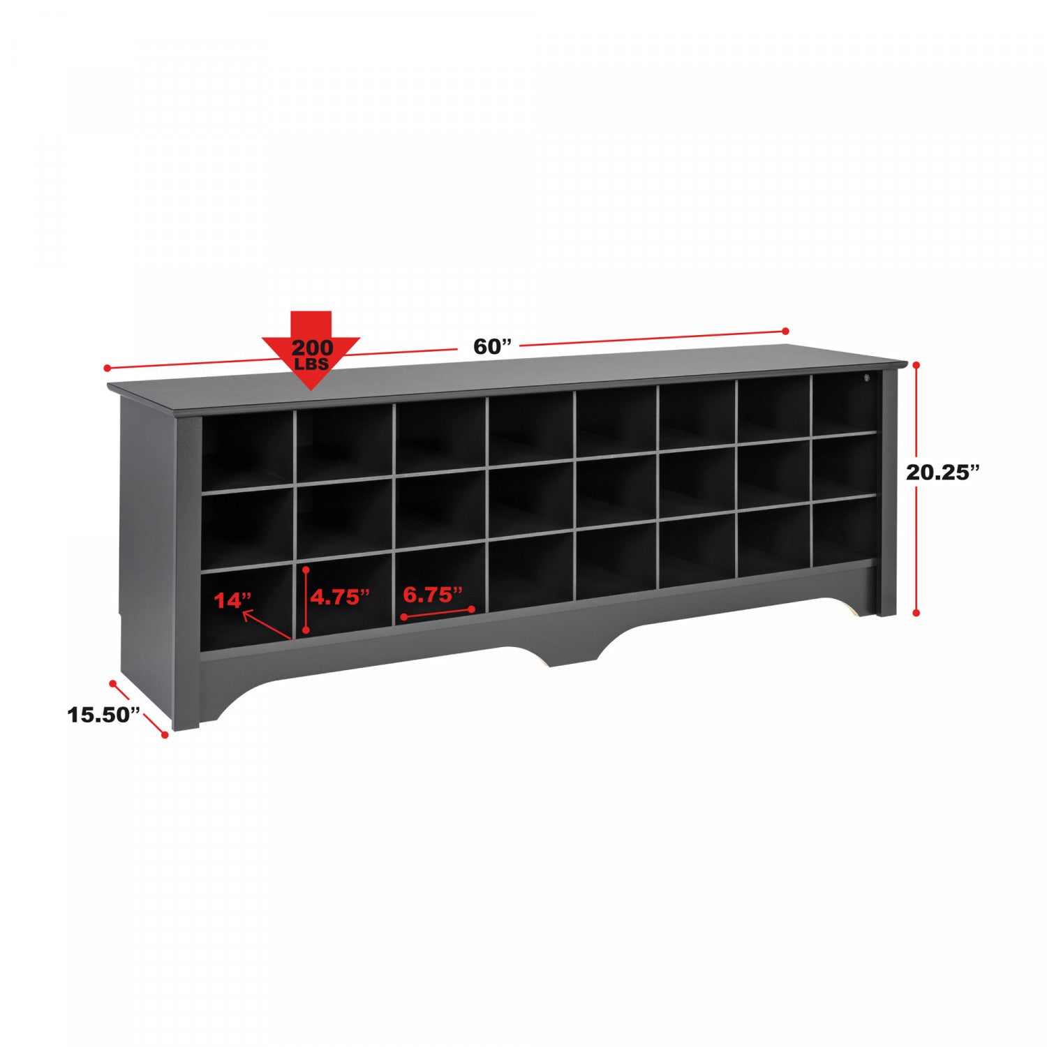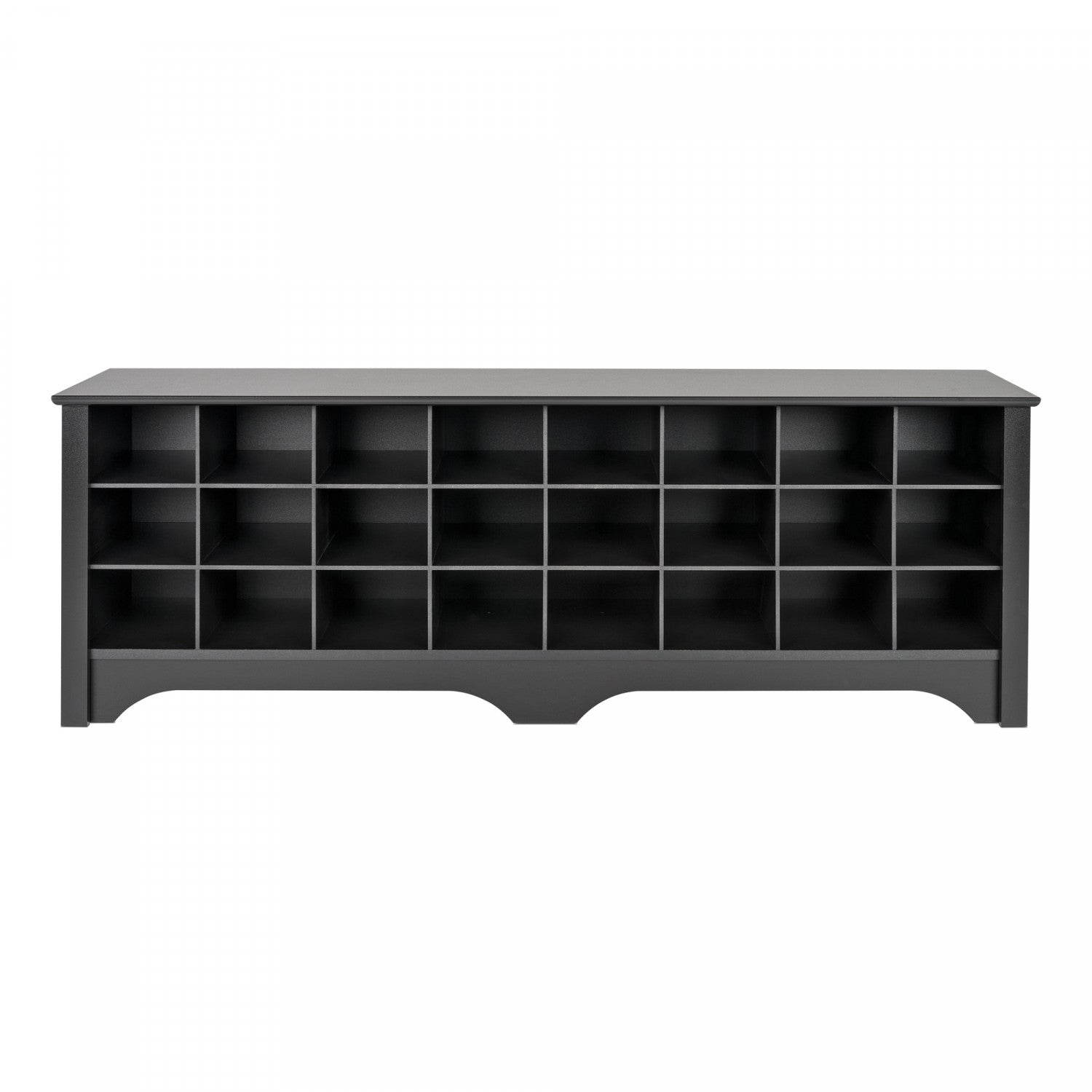 Store your shoes where you put them on with our Shoe Storage Cubbie Bench. Dual-purposed and versatile, this bench is a great addition to your foyer, mudroom, utility room or bedroom. Each of the 24 individual cubbies is spacious enough to hold a pair of size 13 men's shoes, keeping them neatly stored and out of the way. It's the perfect piece to keep your shoes organized.