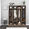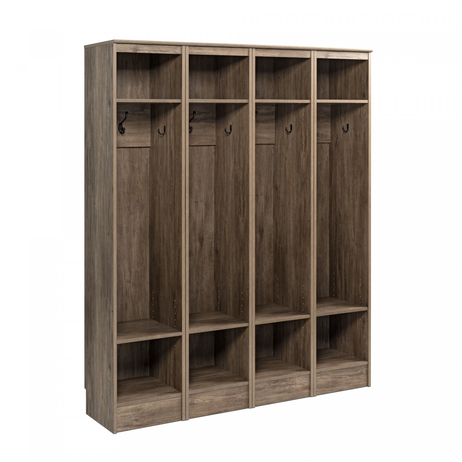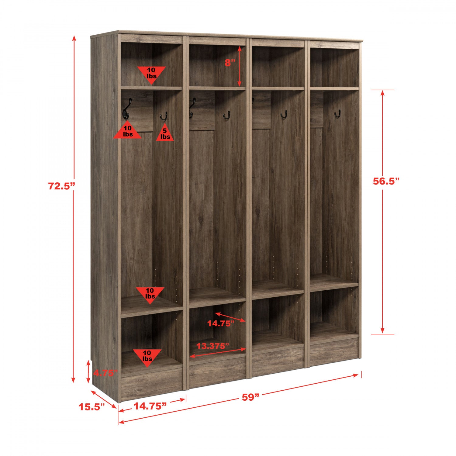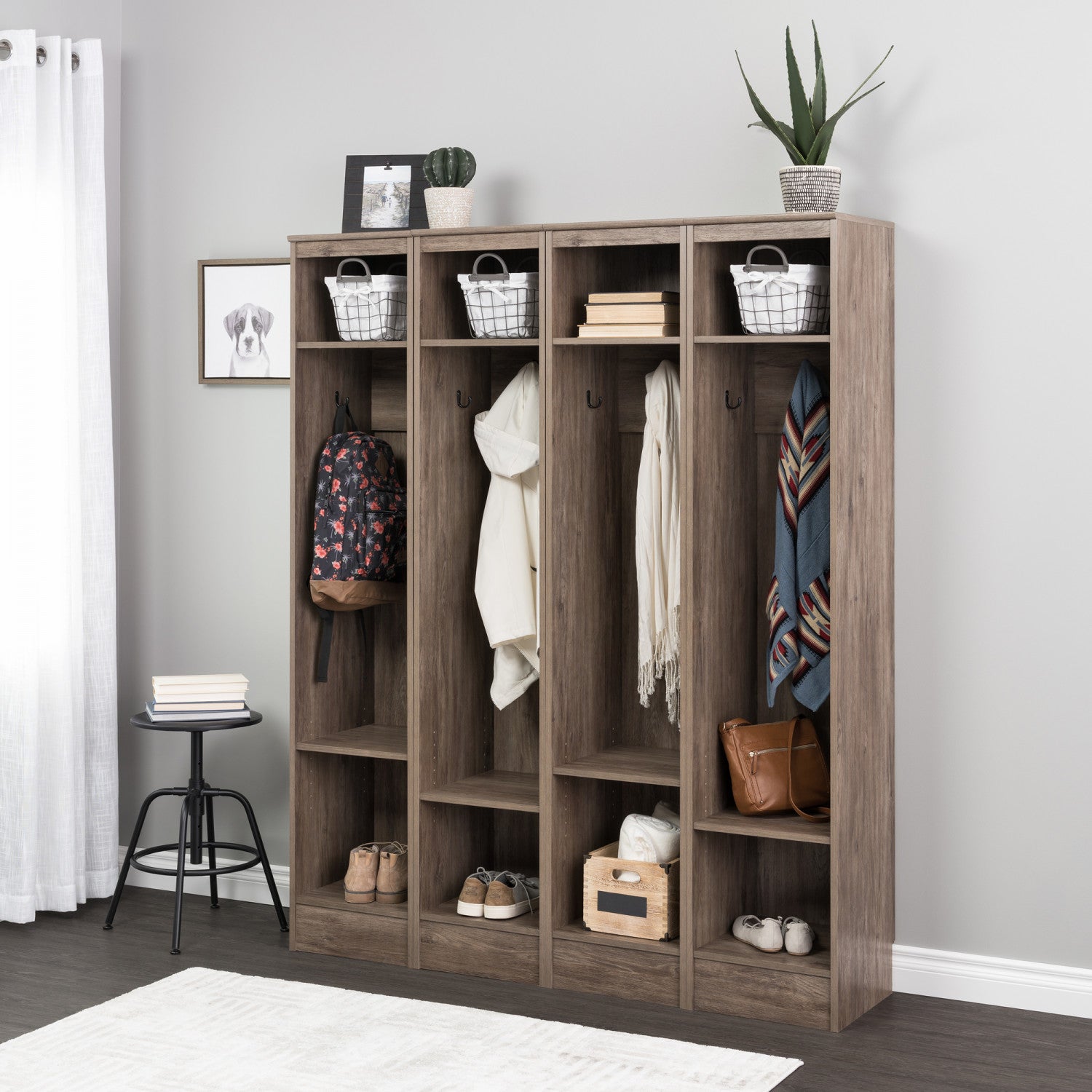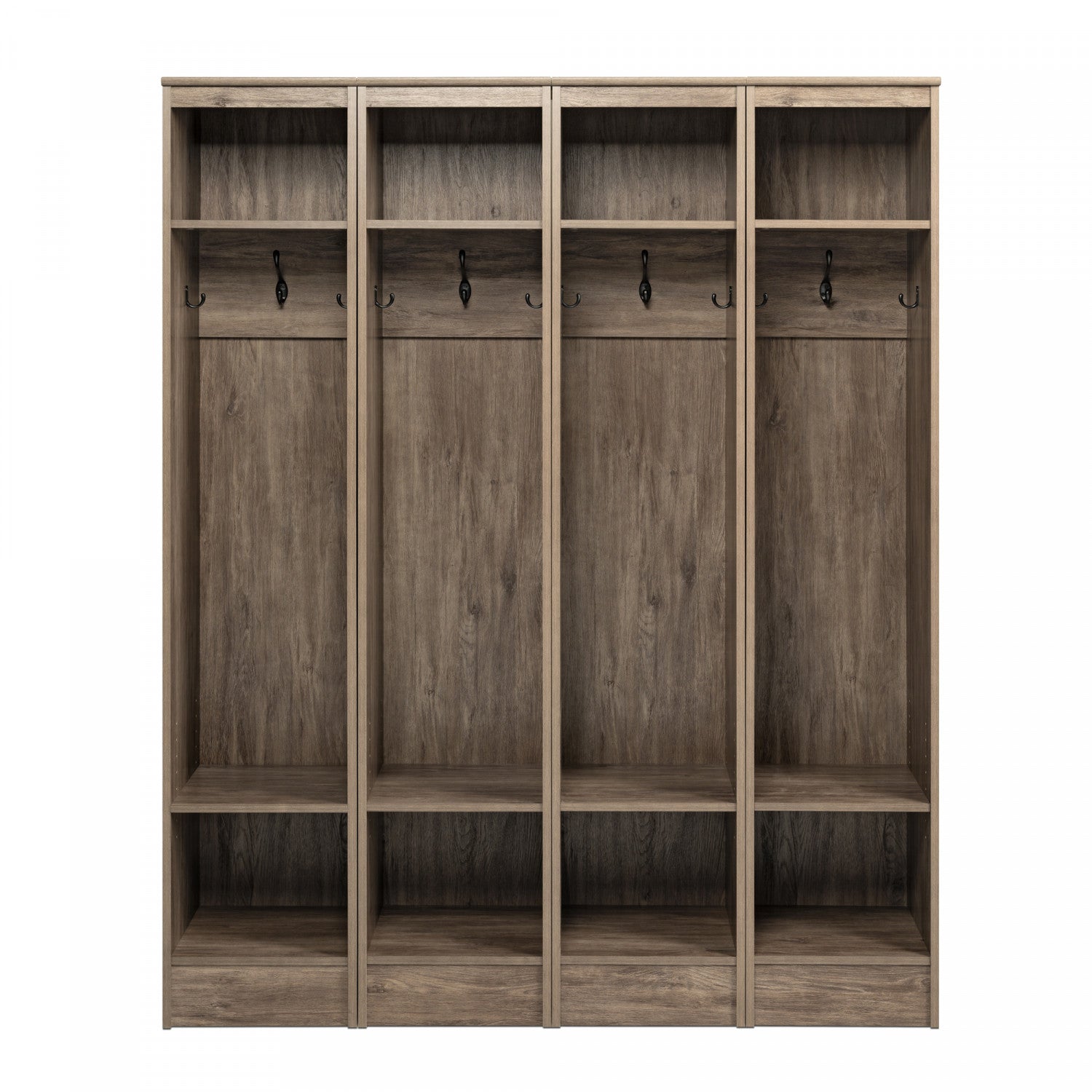 The 4-piece narrow entryway organizer set is a great addition to any family room, recreation room or mudroom. Ideal for growing families, you can use organizers individually or position them side-by-side to create a built-in look. Each organzier is designed for maximum functionality. The tall compartment is 56. 5" high and has a lower shelf that can be adjusted to eight different heights. One large double hook on the rear, reinforced panel and a single hook on each of the side panels allow ample room for hanging items. A fixed shelf on top with an 8" high compartment is spacious enough for decorative baskets, hats, and small bags. Each side panel has 4. 75" high cutouts to accommodate baseboards. Constructed from non-toxic, carb-2 compliant, laminated composite woods. Ships ready to assemble, includes an instruction booklet for easy assembly and has a 5-year manufacturer’s limited parts warranty. Manufactured in canada and meets all north american safety standards.