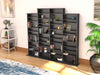 You'll never wish you had more storage space with the quad width wall storage. Its four separate compartments boast generous capacities for even commercial-sized collections, and offer practical, fully adjustable shelves for easy customization. Stay organized thanks to the horizontal storage that makes sorting, filling and rearranging your collection a simple task. It's ideal for those as serious about their media storage as they are about their media collection.