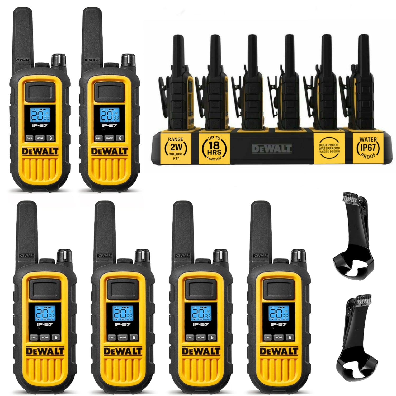 | Introducing the DeWALT DXFRS800 Range: Your Reliable Business Communication Solution! Upgrade your on-site communication with the DeWALT DXFRS800 2W Walkie Talkies, designed for heavy-duty business applications. From hotel front desks to retail stores, restaurants, and grocery outlets, the FRS business series delivers smart, reliable, high-performance, and rugged radios! The DXFRS800 Range comes with 2 or 6 radios + charger and optional earpieces, providing unmatched communication coverage of up to 300,000 sq. ft. / 25 floors. These waterproof and shock-resistant radios guarantee reliable performance in any environment. Upgrade your communication game with the DeWALT DXFRS800. Get your set today and stay connected with ease! |