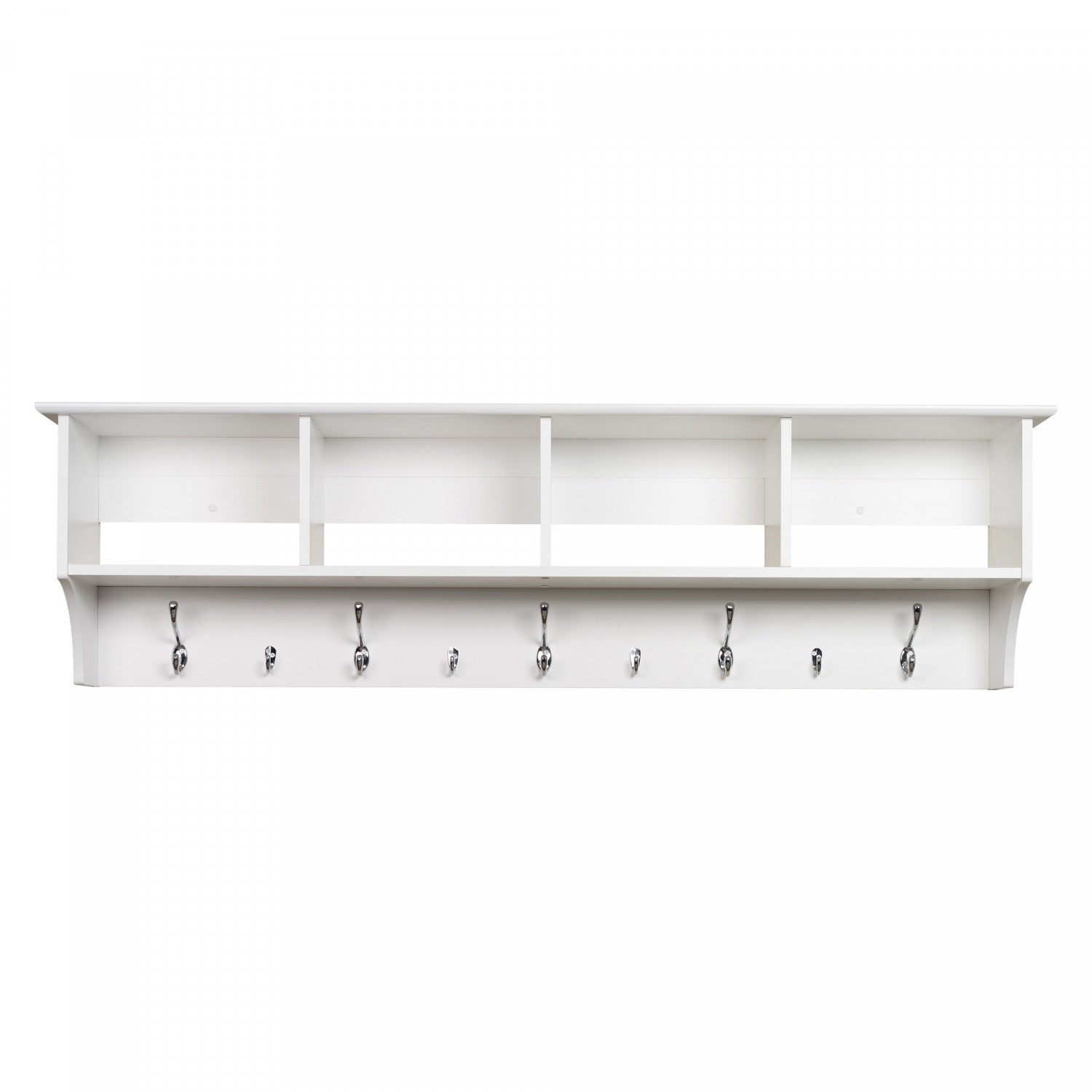 Ideal for an ever expanding household, the 60 in. Wide Hanging Entryway Shelf will keep your entryway belongings together in one place! Suitable for any front hallway, foyer or mudroom, the four compartments provide ample storage for everyone in your family. Fill with baskets, gloves, mittens, hats and books. Five large and four small hooks provide plenty of places to hang jackets, coats, hoodies, sweaters, bags and purses. Installs easily with our innovative hanging rail system.