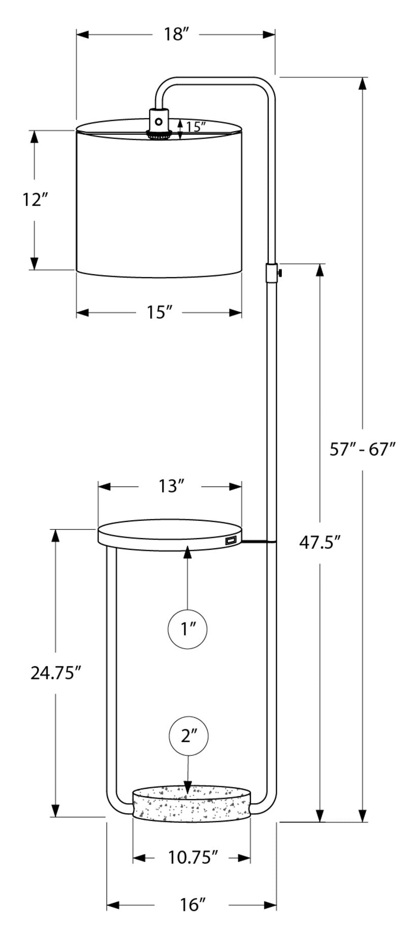 Elevate your space with the ultimate combination of style and functionality with our 67"h floor lamp in brass metal with a linen beige shade. The handy built-in shelf in a walnut laminate finish has a USB port included to easily hold and charge your devices. This contemporary lamp features an adjustable arm support to lower or raise the height and a round poly resin beige textured finish base, perfect for adding a touch of sophistication to any room. Brighten up your home and create the perfect ambiance with the rotary on/off switch that can house a maximum 100W bulb (not included). The decorative linen fabric shade beautifully diffuses the light to illuminate your space in a warm and inviting glow. Whether you're looking to add a chic accent to your living room, bedroom, or office, this floor lamp is sure to impress. With only minor assembly required, we include a 2-year limited warranty against any manufacturer's defects for your comfort.