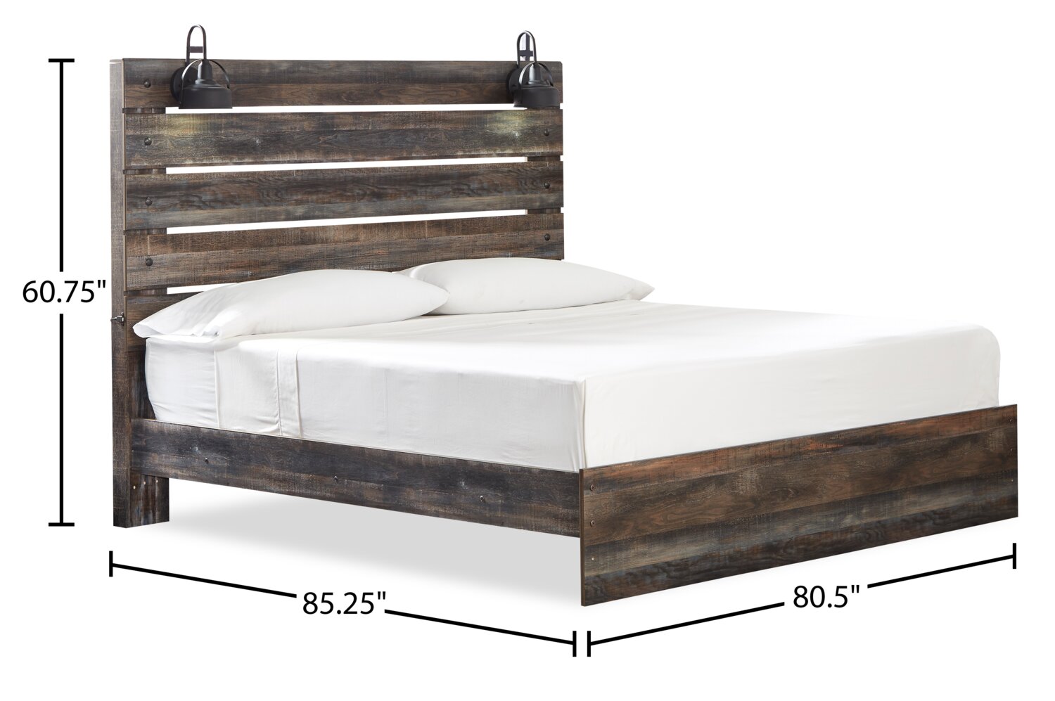 | Technology Features | Metal LED-powered sconce lights provide illumination from the headboard. |