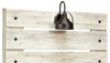 Shine some light on bedtime relaxation with this Abby twin bed. Rustic and industrial styles collide in natural-looking wood with a light white finish and dark metal nailheads. An LED-powered sconce light built into the headboard provides some extra illumination for when you want to stay up late and read just one more chapter. A pair of USB ports means that you'll never have to worry about your phone dying in the middle of the night again. Three slats with matching support legs make sure you're comfortably supported all night long. Curl up on the Abby tonight, and let some light into your dreams.
