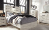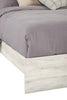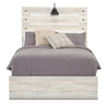 Shine some light on bedtime relaxation with this Abby full bed. Rustic and industrial styles collide in natural-looking wood with a light white finish and dark metal nailheads. An LED-powered sconce light built into the headboard provides some extra illumination for when you want to stay up late and read just one more chapter. A pair of USB ports means that you'll never have to worry about your phone dying in the middle of the night again. Three slats with matching support legs make sure you're comfortably supported all night long. Curl up on the Abby tonight, and let some light into your dreams.