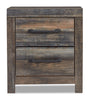 Follow the winding road home to beauty of this Abby dresser. Rustic and industrial styles collide in natural-looking wood with a light brown finish and dark metal drawer pulls. Pull open the two spacious drawers to reveal the perfect amount of space to store your electronics, books or other bedside essentials. From cheerful country farmhouses to stylish urban lofts, the Abby is ready to enhance your bedroom decor wherever you go.