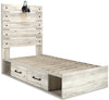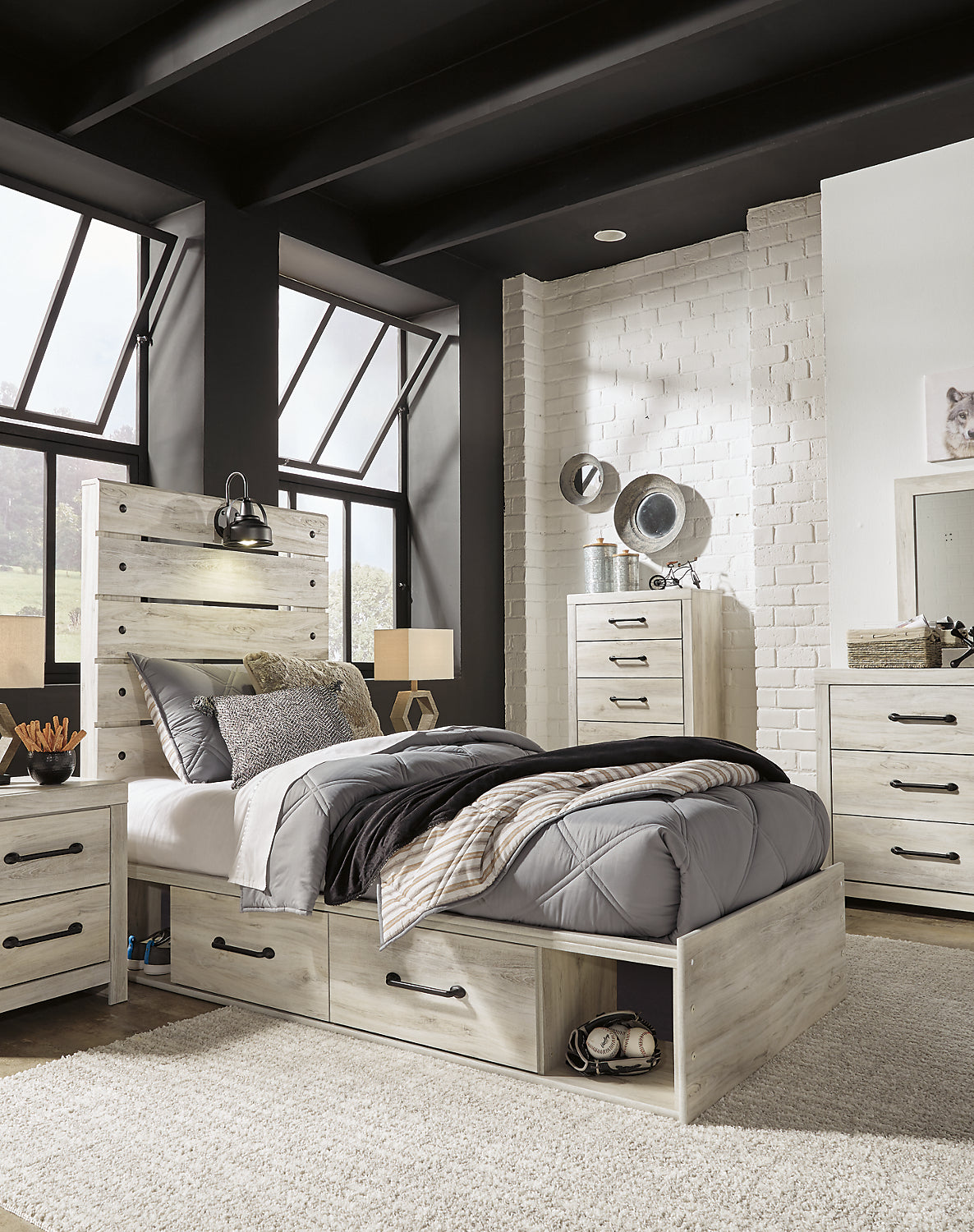 | Storage Options | Four spacious drawers and four open cubbies built into the bed's sides add extra storage space to your room. |