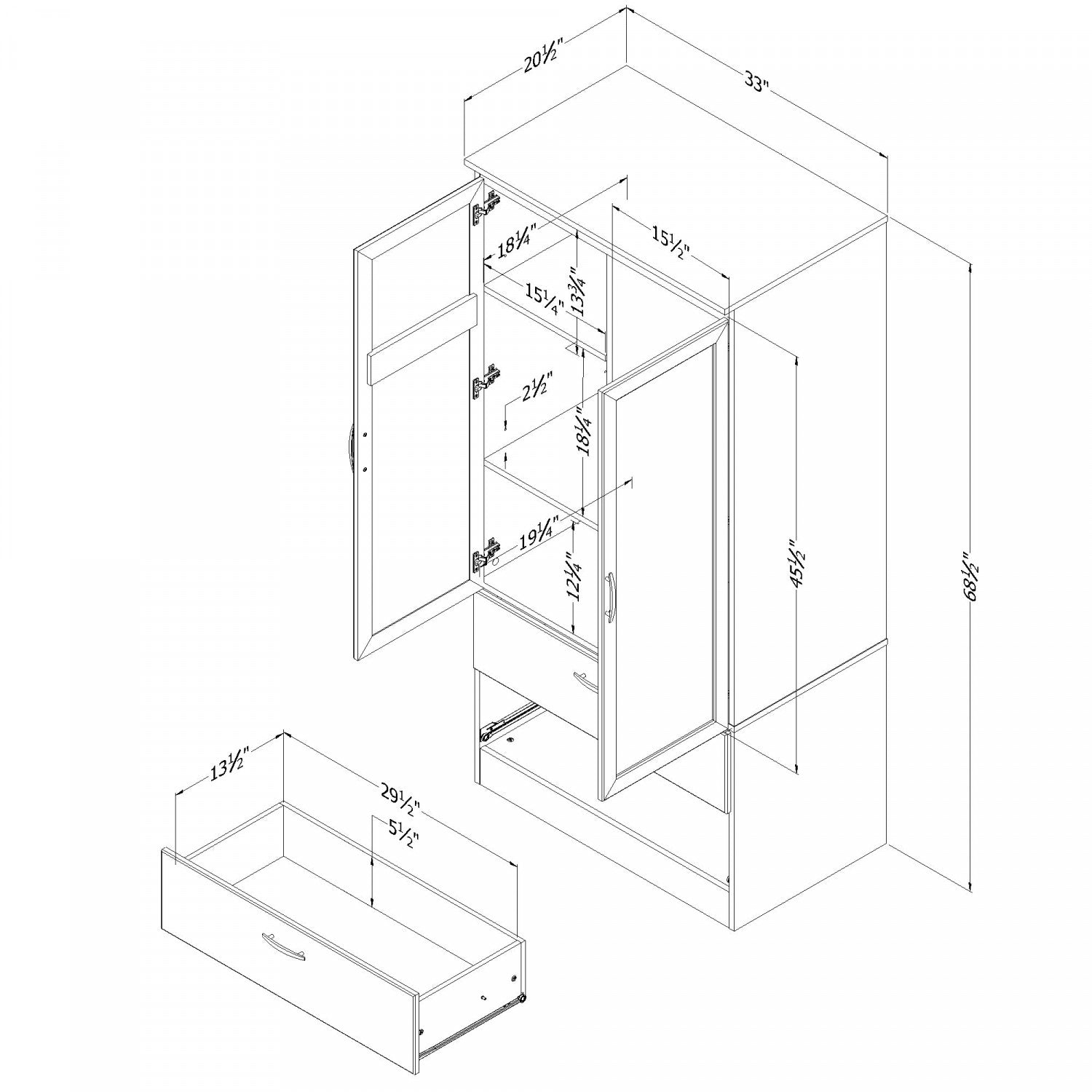 Width: 33" (83.8 cm) Height: 68.5" (174.0 cm) Depth: 20.5" (52.1 cm)