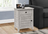 Bring in the perfect combination of style and functionality to a room with this 25 inch high side accent table. Designed in a transitional style with coastal inspiration, this space saving table is finished on all sides in a breezy washed grey veneer for a casual relaxed look. Place a table lamp and some decorative accessories on the spacious, easy to clean top and set it next to a sofa or chair as an end or side table in a living room or use it as a nightstand in the bedroom. Offering plenty of storage with a drawer and a closed cabinet with clapboard paneling on the front and sides, and complemented with simple black metal knobs, this durably designed table will be a the most practical furniture piece you will own. Easy to assemble with all parts and illustrated instructions included, this table is backed by a 5 year limited warranty against manufacturer's defects for your confidence and many years of enjoyment.