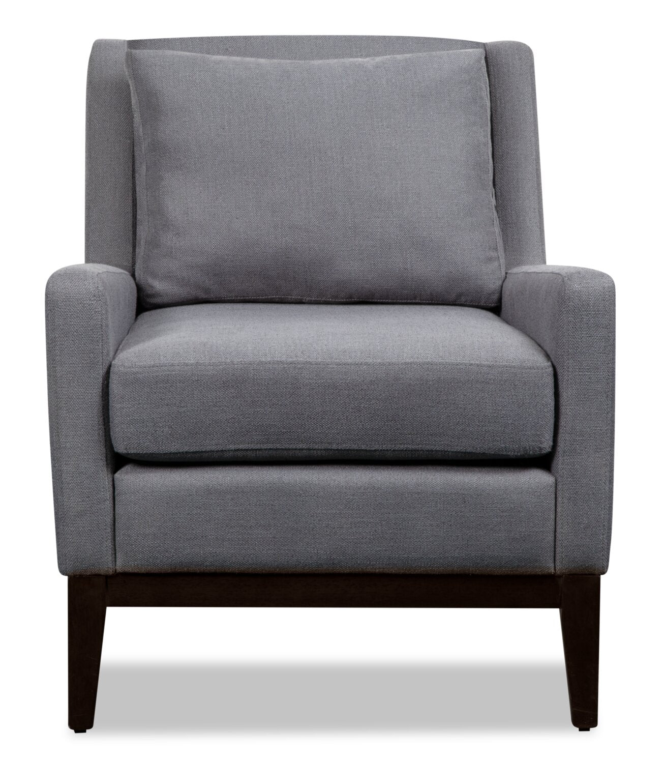 Savour your time at home with the comfort of this stylish dark grey Adel accent chair. Linen-look fabric envelops this piece for a charming and chic appeal. Both the seat and back cushion feature a mix of soft fibre fill and robust foam to ensure you stay snug while you binge watch your favourite TV shows. While the upholstery provides a neutral base to emphasize however you want, the dark brown wood legs reach up to frame the chair's base with fashionable stability. Keep your living space looking modern and inviting with this elegantly designed Adel accent chair.