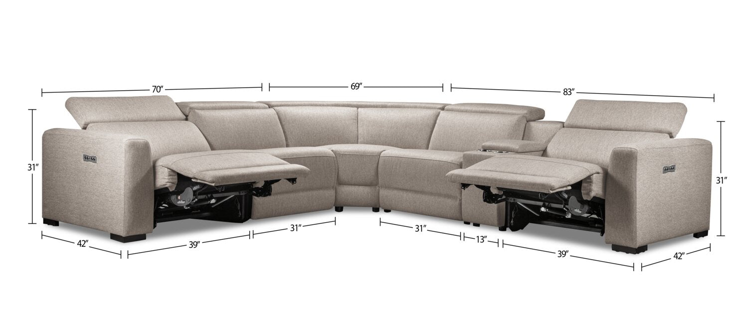 Adelaide 6-Piece Power Reclining Sectional - Grey