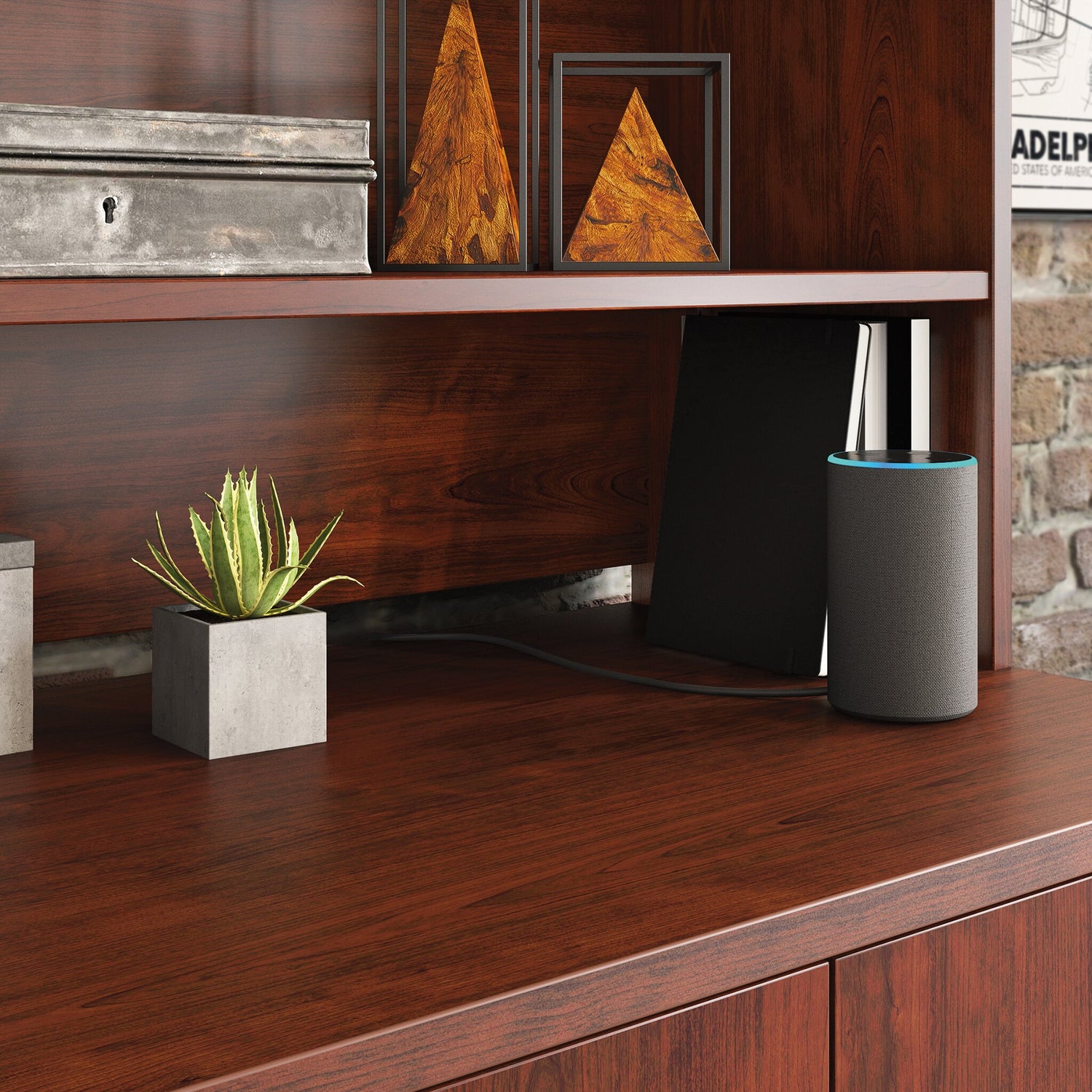 Create a stunning focal point and increase the storage capabilities of your workspace with this Affirm 36" x 36" bookcase hutch. Nestled on the desktop, hutches add just the right amount of functionality to an office without taking up too much room. Keep those stacks of folders organized and decor items on display thanks to convenient two-shelf storage. Finished in cherry red, combine this office hutch with the compatible Affirm cabinets (AFFB4FIL, AFFB1FIL, AFFR1FIL) for a stylish, first-rate workspace.
