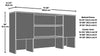 | Storage Options | Two cabinets and six shelves (four adjustable) |