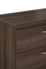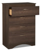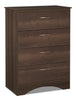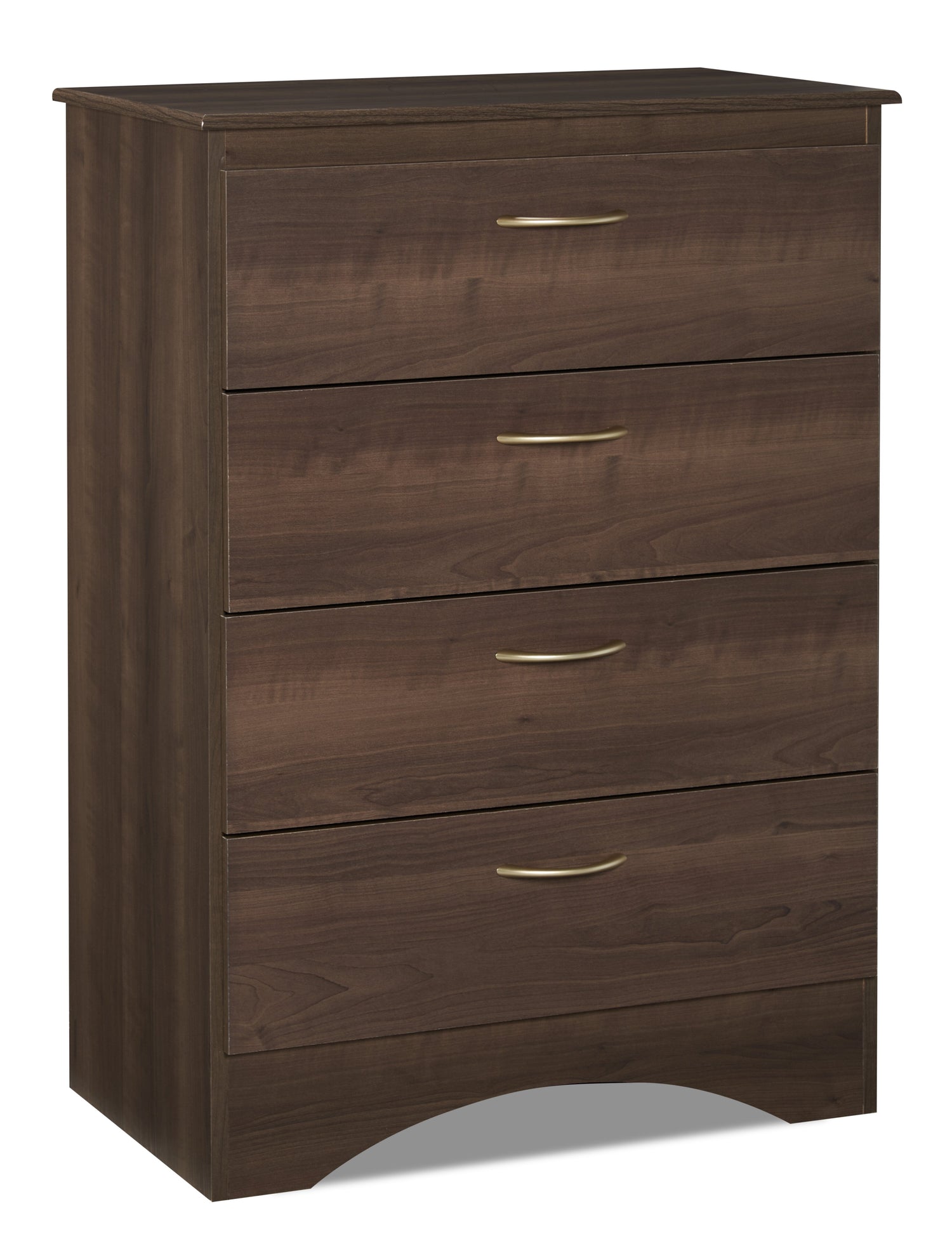 Settle in and enjoy the cozy feeling this petite Aida chest adds to your bedroom. Quality engineered wood is finished in a rich, natural-looking brown colour similar to a tantalizing Chablis wine. Pull open the sparkling pewter handles to discover four compact but sturdy drawers, ready to hold your clothes, blankets or other bedroom essentials. Give it a light push when you're done and the self-closing feature of the drawers gently tuck things back away. Bring home the Aida and let this storage star maximize your living space.