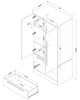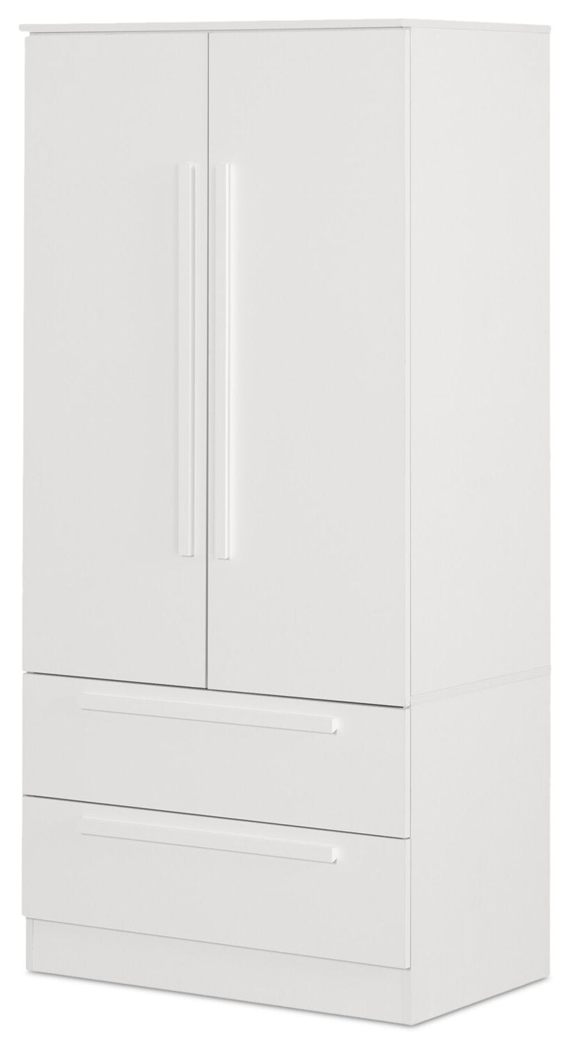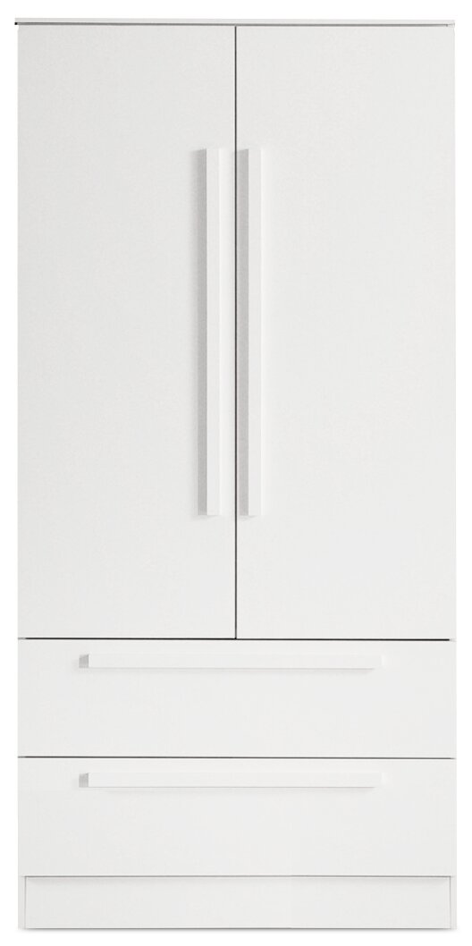 | Storage Options | Two drawers, three shelves (two adjustable) and a rod for hanging clothing. |