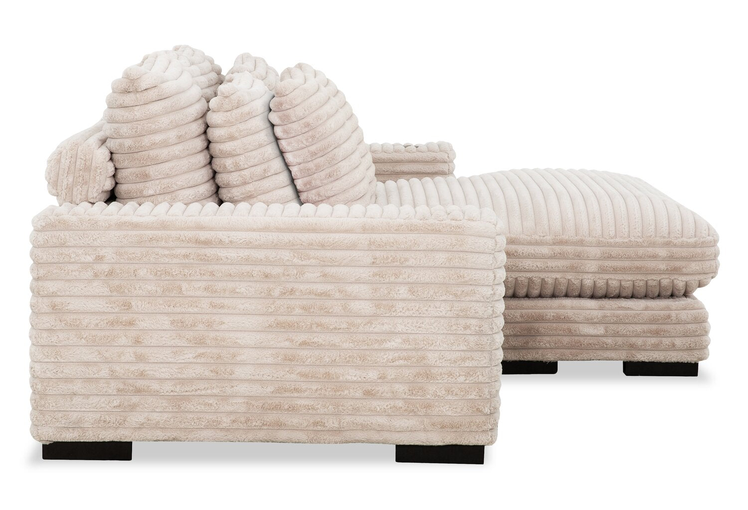| Accent Details | Dark wooden feet complement the light beige hue, and soft grooved fabric provides a luxurious look and feel. |