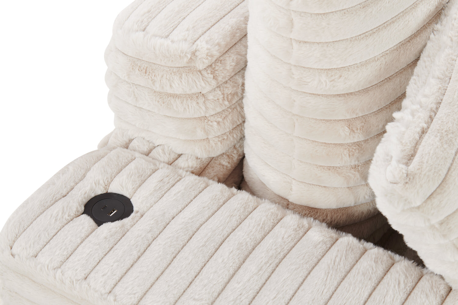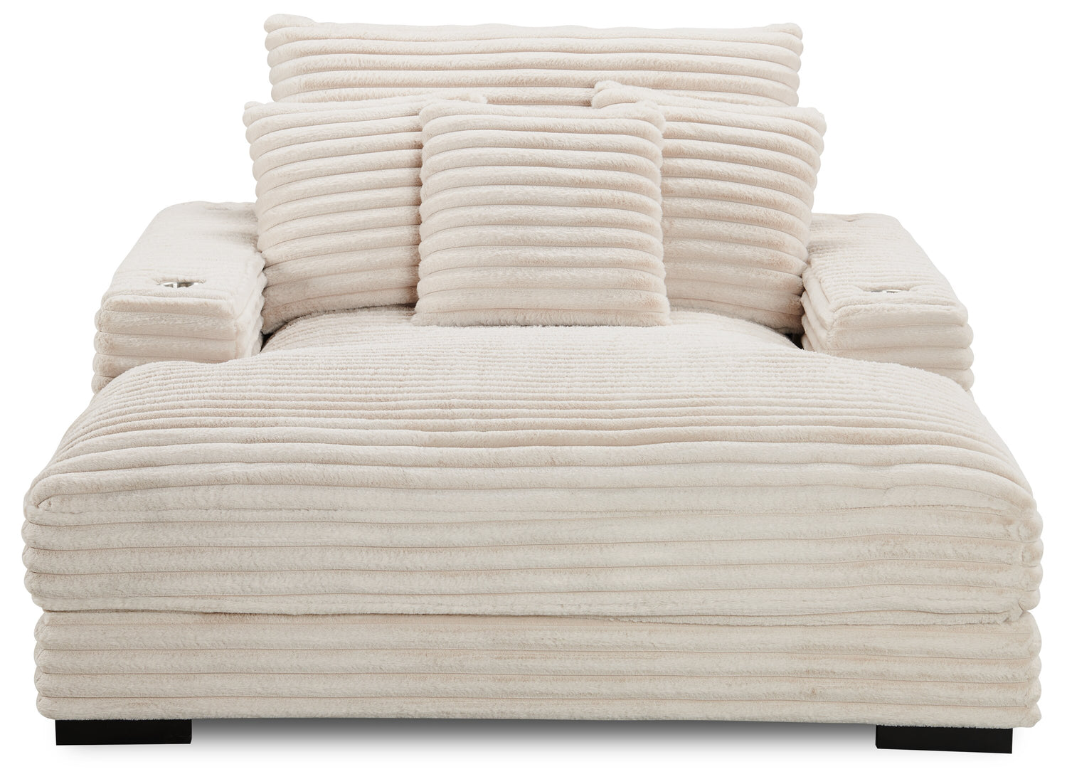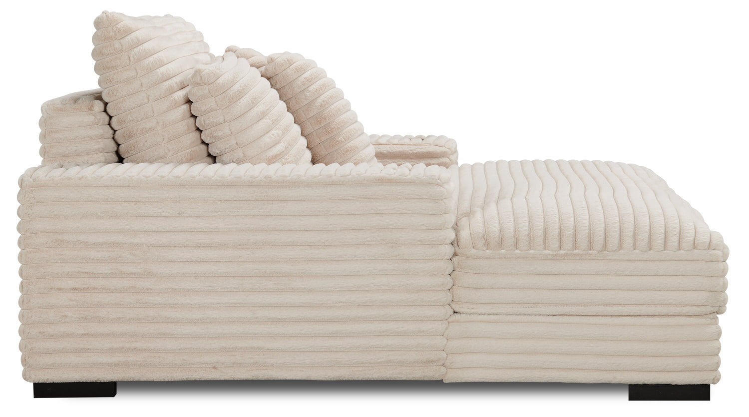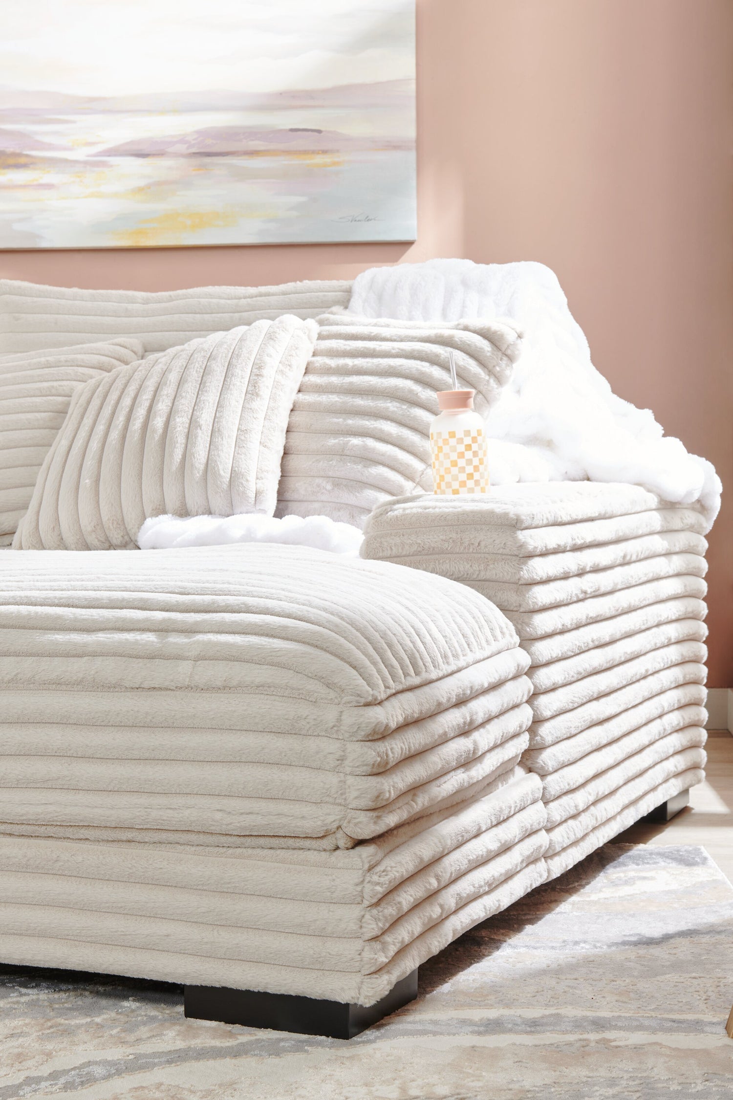| Accent Details | Dark wooden feet complement the light beige hue, and soft grooved fabric provides a luxurious look and feel. |