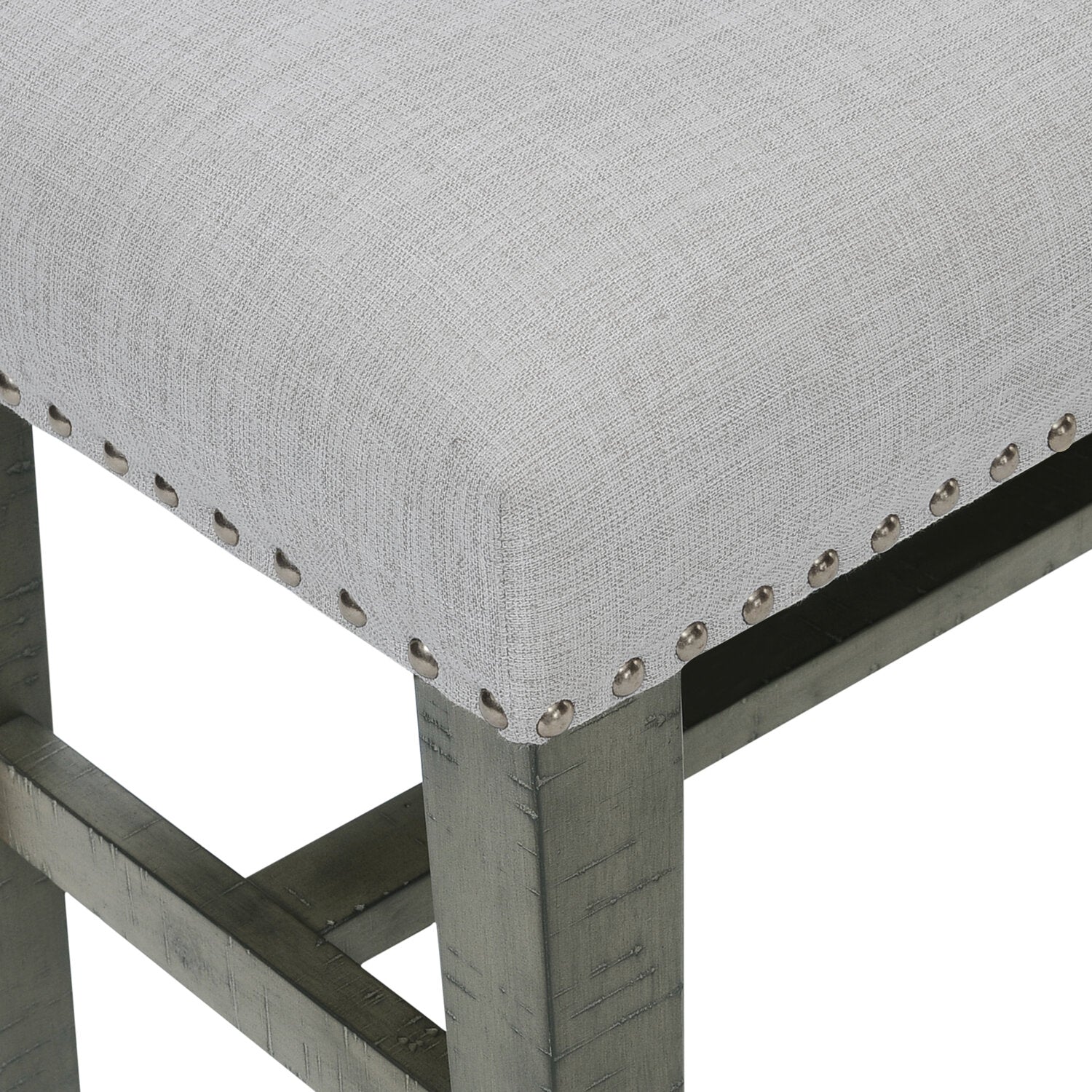 | Accent Details | Antiqued nuts and bolts add industrial chicness, while the linen-look fabric gives this piece classic charm. |