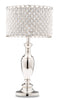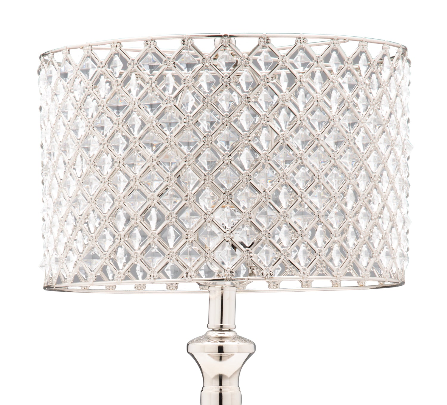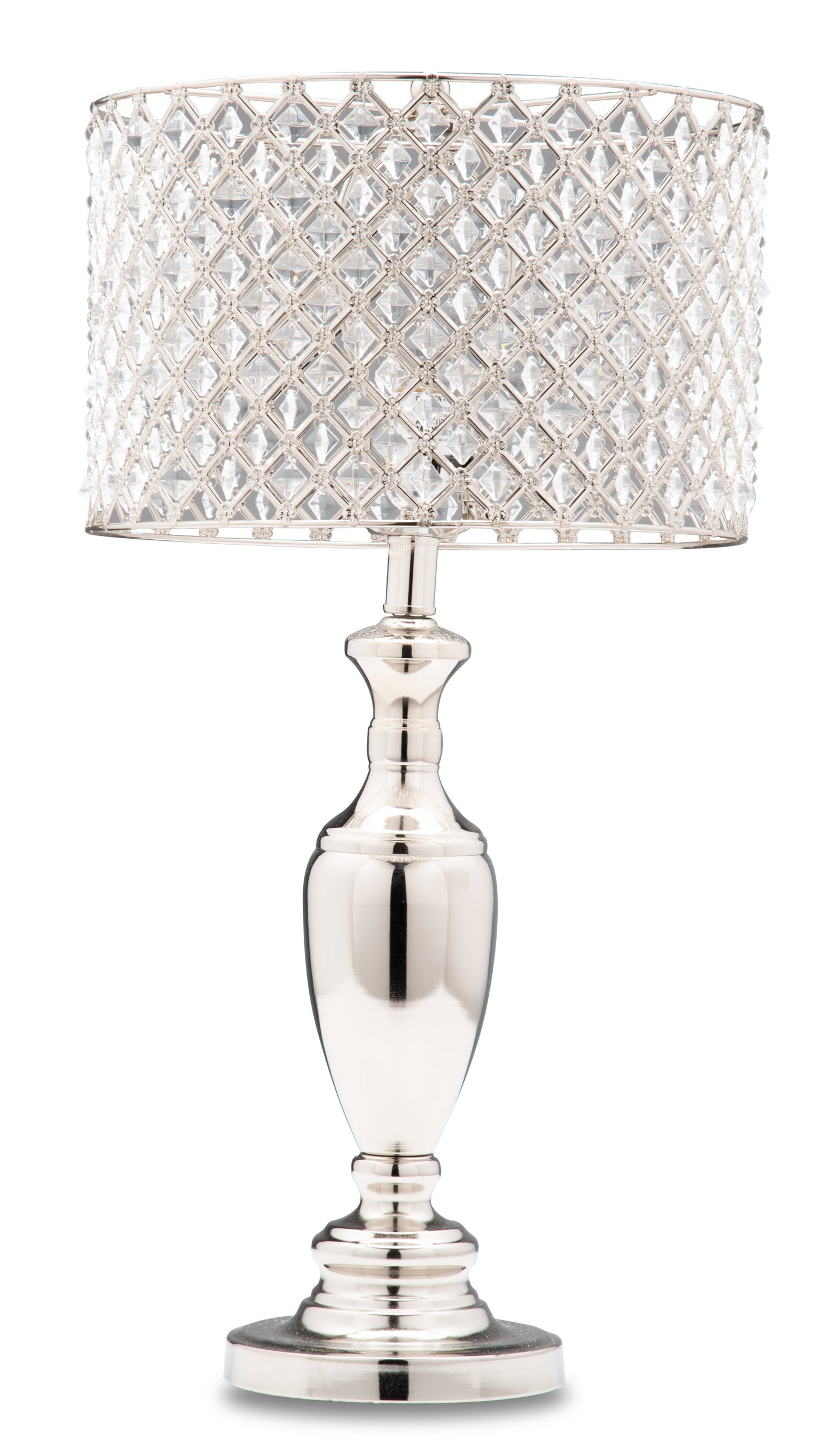 The metal lampshade on this Amalia table lamp is decked out in clear crystal beads that beam with glam splendour. Cast in a criss-crossing chain link pattern, the shiny metal frame features diamond-shaped spaces between the metal wires – with clear crystal beads shimmering in the light. The stand is finished with polished nickel for an extra dose of dazzle. Whether you want extra sparkle in the living room or swanky style in your bedroom, this Amalia lamp brings it in full effect.