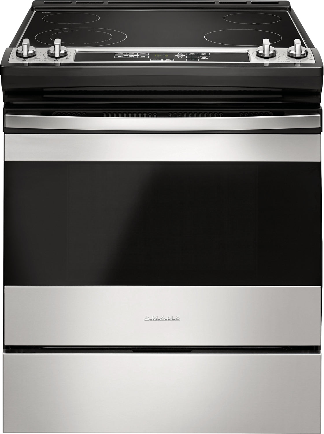 Amana’s slide-in range makes creating chef-quality meals at home easier than ever. With front controls, you never need to reach across the hot cooktop to turn down the temperature and there is no backsplash to get greasy. Bake Assist makes pre-heating your oven to common temperatures as easy as touching a button, while the digital display is large and easy to read. Finally, once dinner is done, clean-up couldn’t be easier. Simply wipe down the smooth ceramic top, set the self-clean option, kick back and relax.