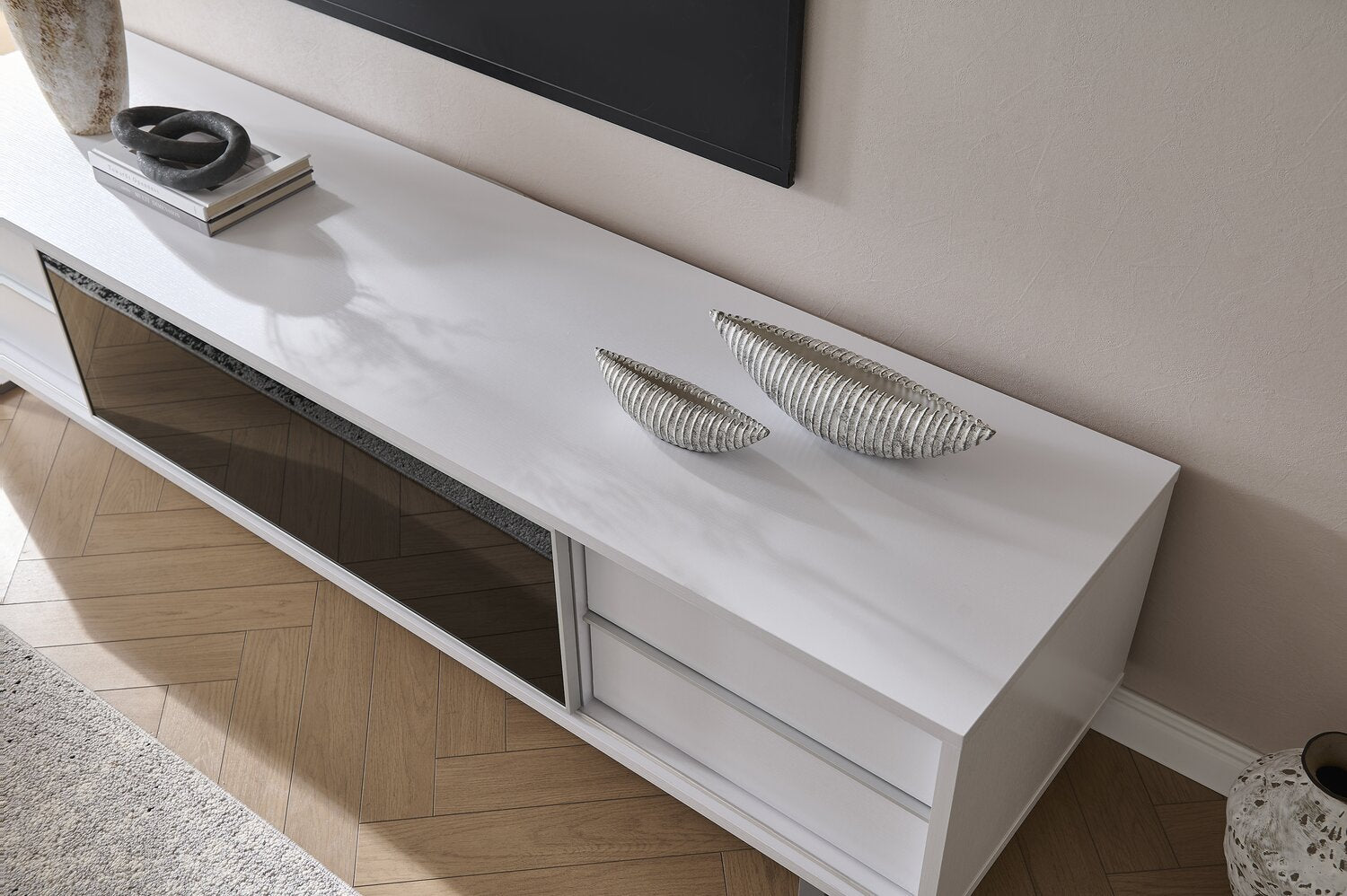 | Primary Construction Material | Glass, Metal, Medium Density Fibreboard (MDF), Particleboard Glass is sturdy and can support a lot of weight, yet has a light, thin design for an elegant finish. Metal is known to maintain sturdy support, yet can be heated and bent into eye-catching designs. Rest easy knowing this metal piece will meet your household needs. Particleboard is created by compressing wood chips and resin together, producing an affordable and stable wood alternative. This man-made product is a great base for veneers, laminates and other finishes. |