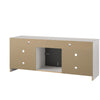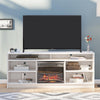 Dial in your perfect level of cozy, no matter the weather, with a 65" TV Stand with Electric Fireplace. The fireplace entertainment center has plenty of open storage. Six shelves with adjustable shelving keep your entertainment components organized with built-in wire management to keep cords tangle-free. The TV stand accommodates most 65" flat panel TVs with a maximum weight of 120 lbs. What makes it stand out is the integrated electric freestanding fireplace heater, bringing a natural warmth to your space. The lifelike LED flames, grate, and log set create a cozy atmosphere, while the tempered glass front enhances its contemporary look. Efficiently heating rooms up to 400 square feet, this fireplace heater is perfect for those cold nights. Enjoy the calming flames with or without heat, making it versatile for any season. The cool-touch front ensures safety for kids and pets. Assembly is straightforward with clearly labeled parts, and our customer support team is always ready to help. Plus, replacement fireplace inserts keep your furniture looking stunning for years. Made from engineered wood, this TV console with fireplace insert is both elegant and affordable.