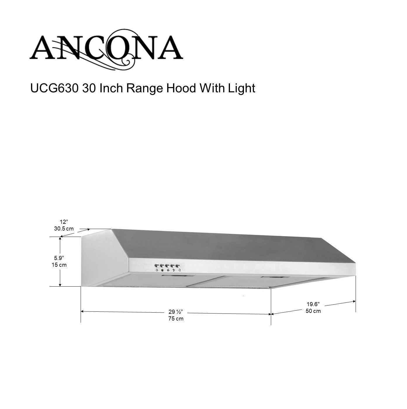 The Ancona UCG630 30 inch Under Cabinet Range Hood generates a lavish impression that leaves no kitchen unnoticed. The Ancona UCG630 features a powerful motor in a compact design, allowing maximum speed with reduced noise level. The delicate stainless-steel aluminum filters will maintain their luster even after many washes, keeping your range hood looking as majestic as the day you purchased it.