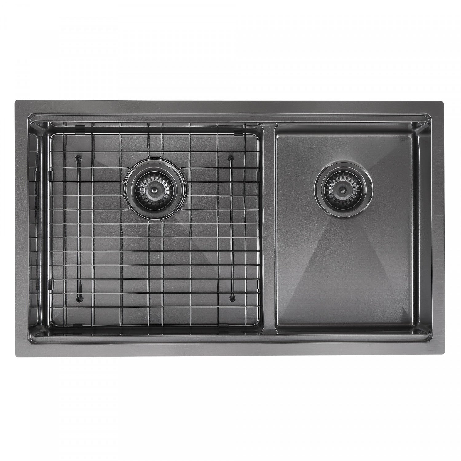 Handcrafted in 18-gauge stainless steel, this undermount sink is engineered with scratch, stain, and bacteria resistant PVD Nano technology. Generous 10-inch-deep bowls give you plenty of space for oversized cookware and the split design is perfect for multitasking. Use the stainless-steel roll-up mat to simplify everyday chores and the custom grid to keep your sink looking beautiful for years.