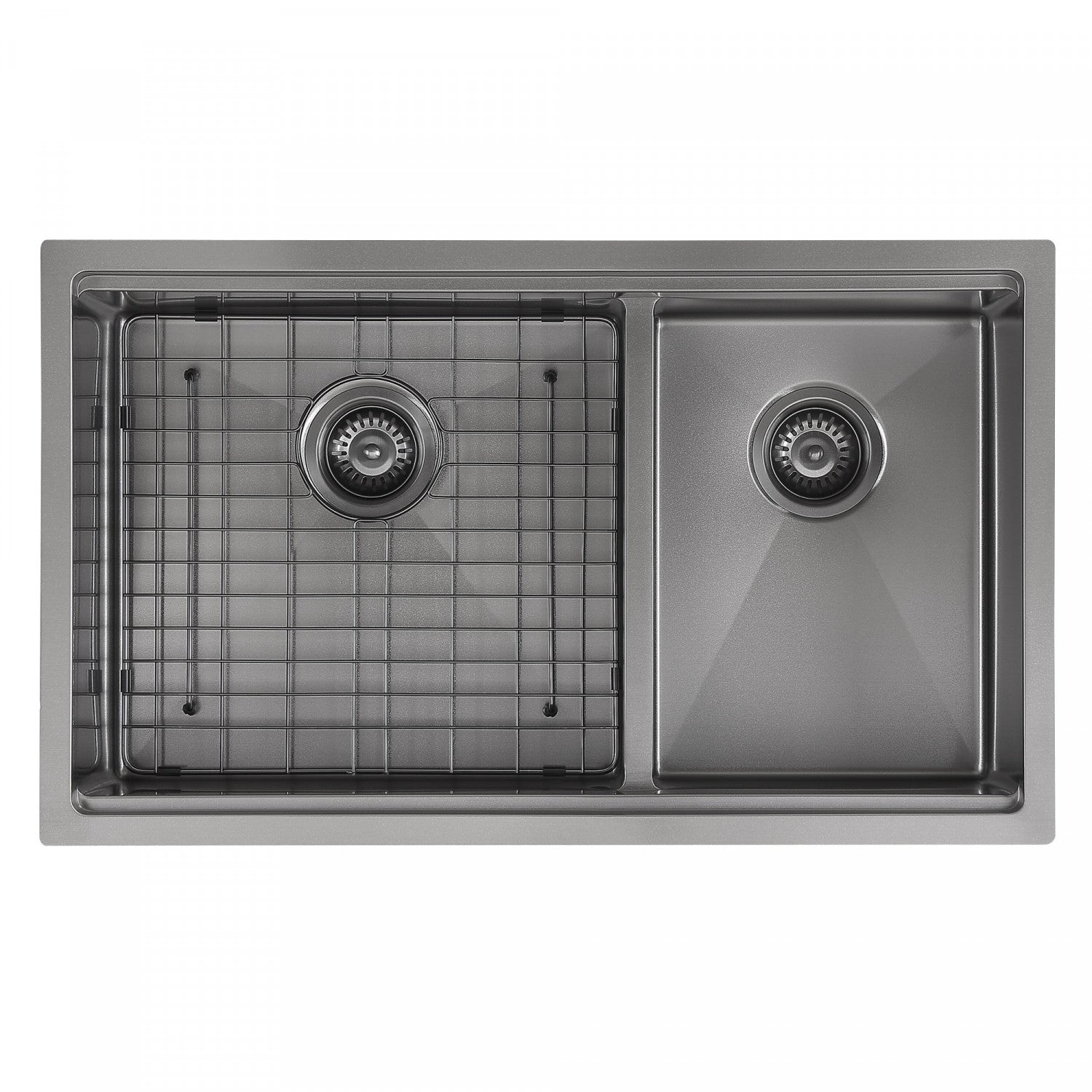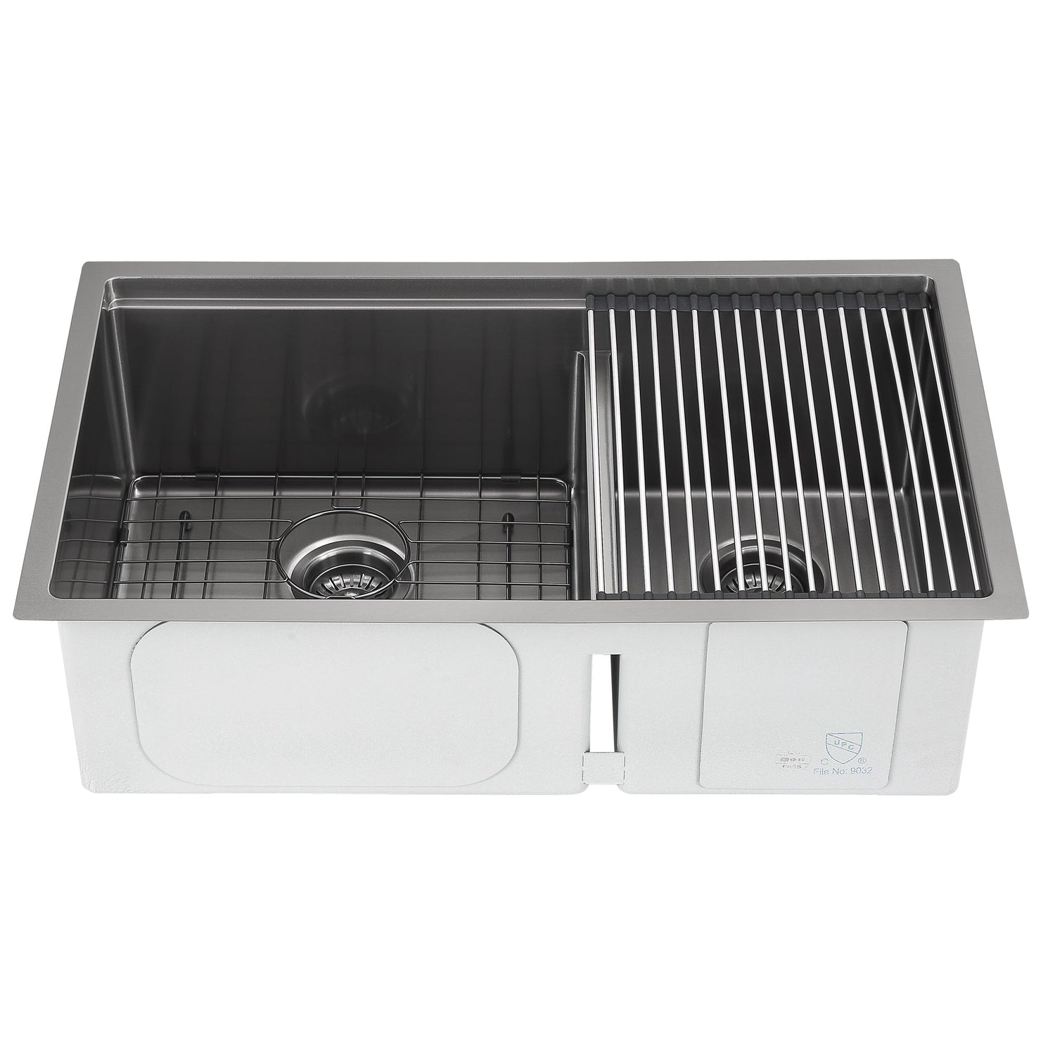 Handcrafted in 18-gauge stainless steel, this undermount sink is engineered with scratch, stain, and bacteria resistant PVD Nano technology. Generous 10-inch-deep bowls give you plenty of space for oversized cookware and the split design is perfect for multitasking. Use the stainless-steel roll-up mat to simplify everyday chores and the custom grid to keep your sink looking its best.