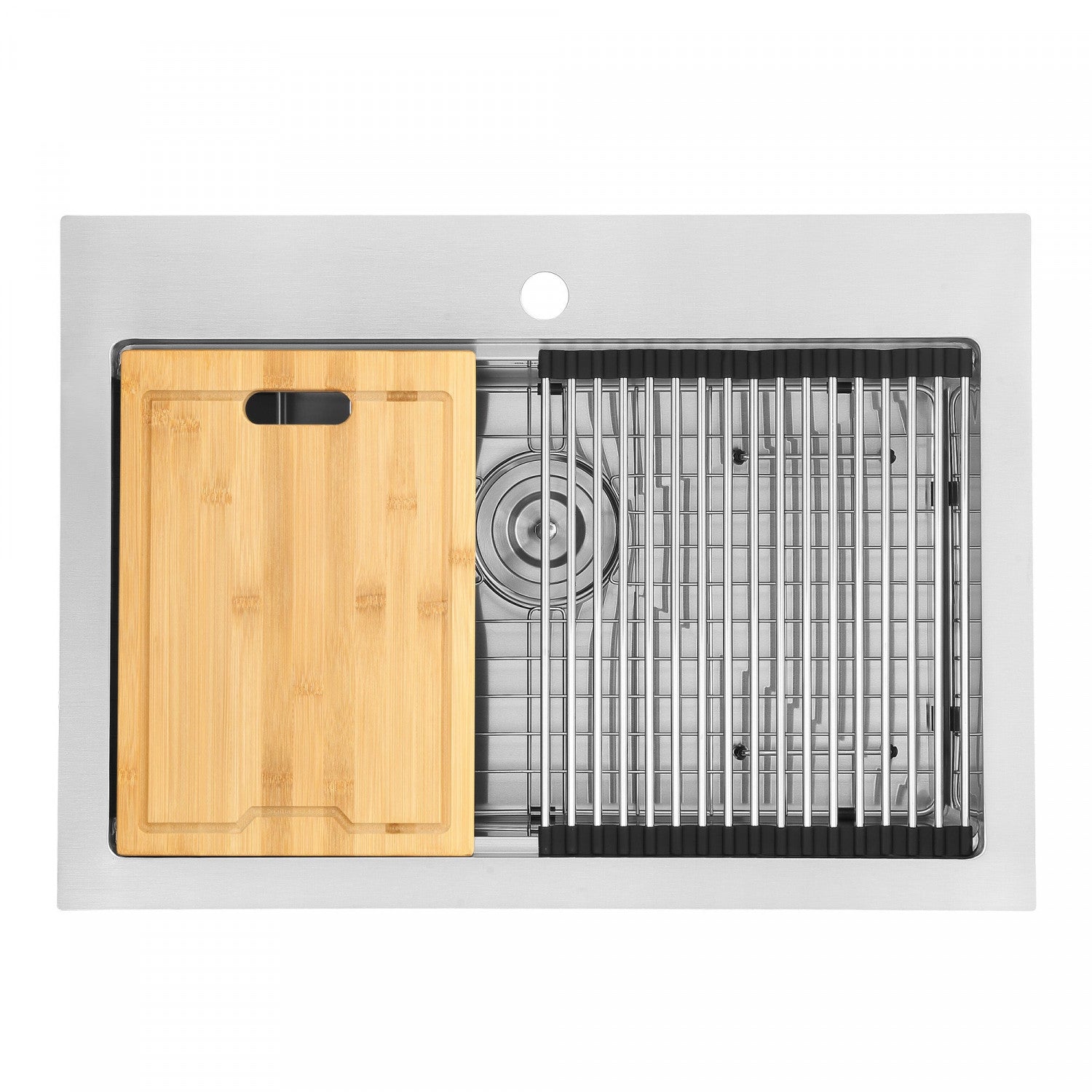 This dual-mount sink is handcrafted in 18-gauge stainless steel and offers a convenient top-mount or under-mount installation for worry–free flexibility when choosing your countertop. A unique built-in ledge allows the custom accessories to slide across the sink, so you can effortlessly go from meal prep to clean-up. Superior quality and design are expertly paired in this practical workstation.