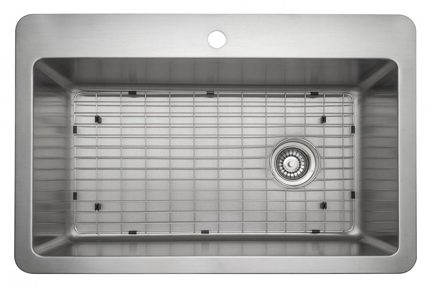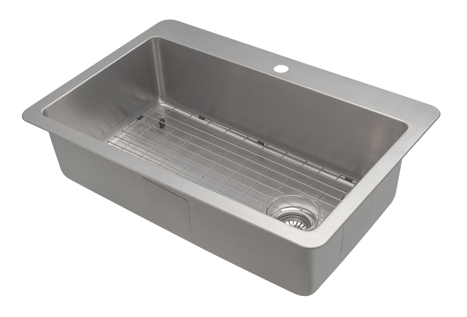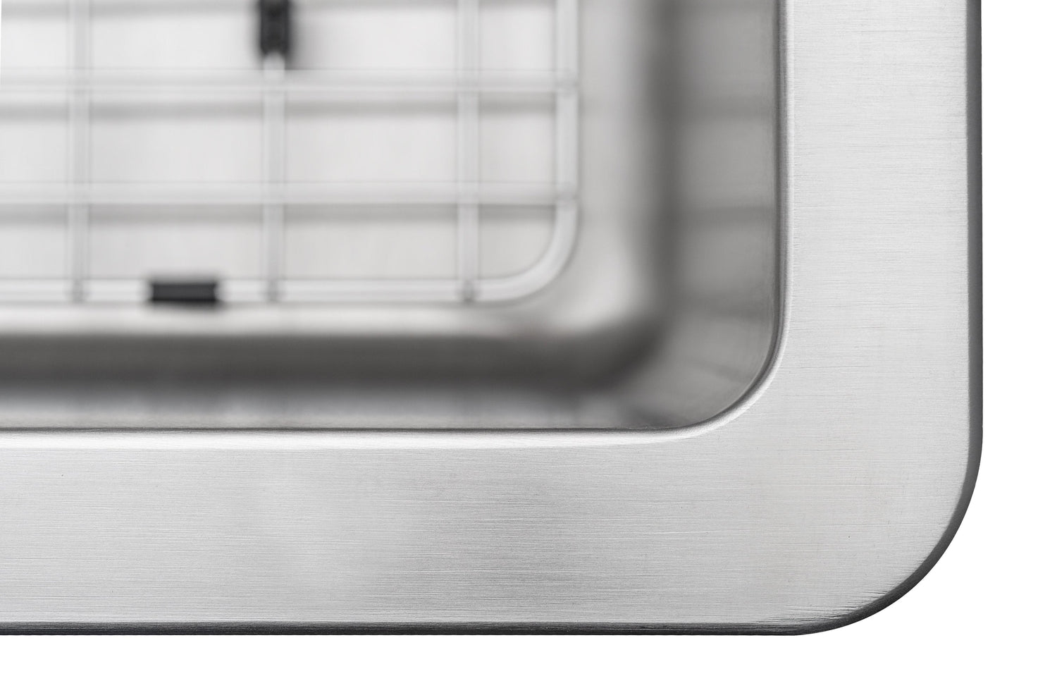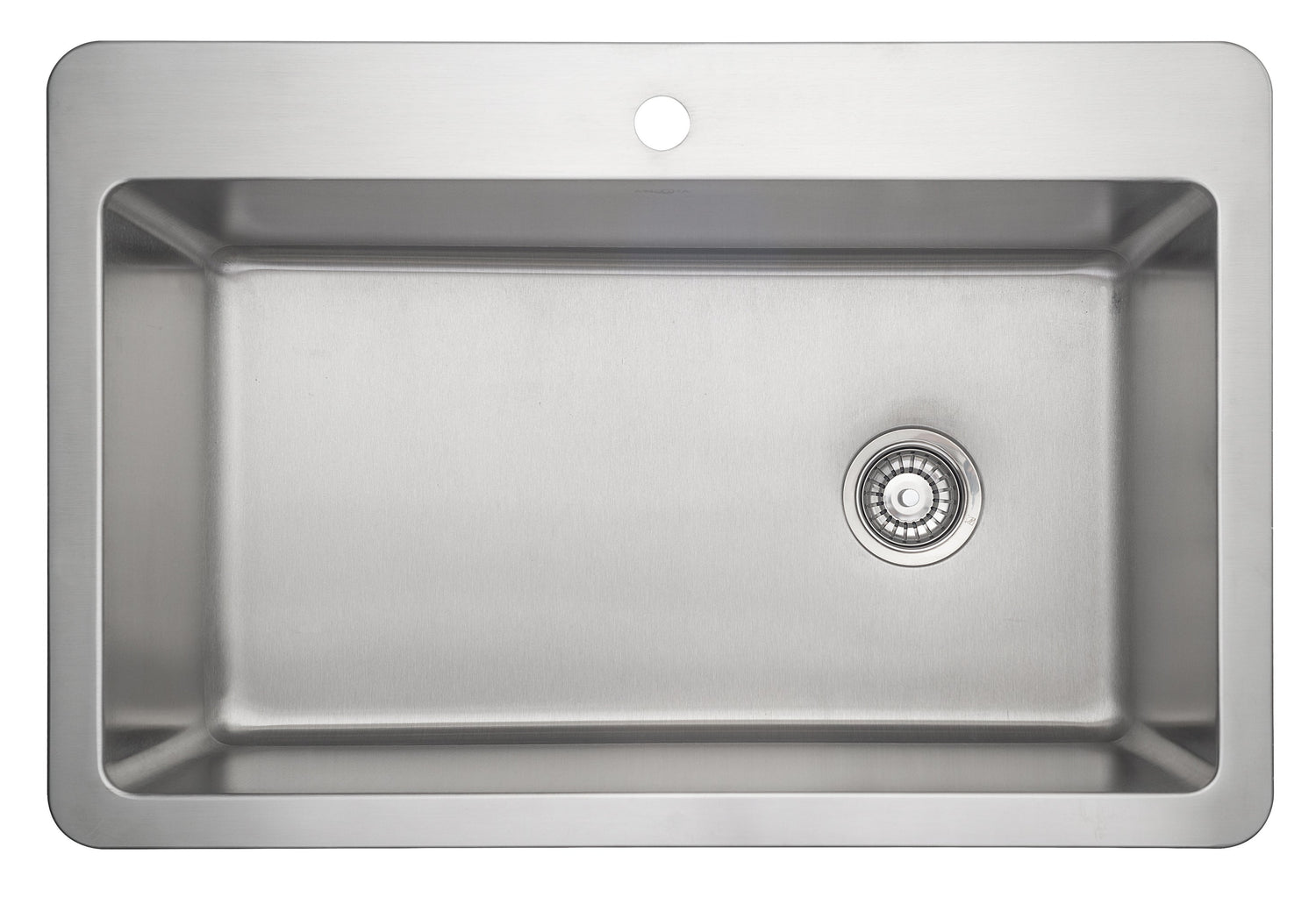 Let the Ancona Valencia Series Dual Mount Single Bowl Kitchen Sink bring elegance and practicality to your kitchen. This modern 18-gauge stainless steel sink includes a 9-inch deep bowl design that allows you to perform all of your daily kitchen tasks while keeping cleaning easy and quick. Featuring a versatile dual-mount design, this beautiful stainless steel sink will let you opt for a top-mount or under-mount installation guaranteed to use the most of your valuable space, while maintaining a sleek appearance for your countertop.