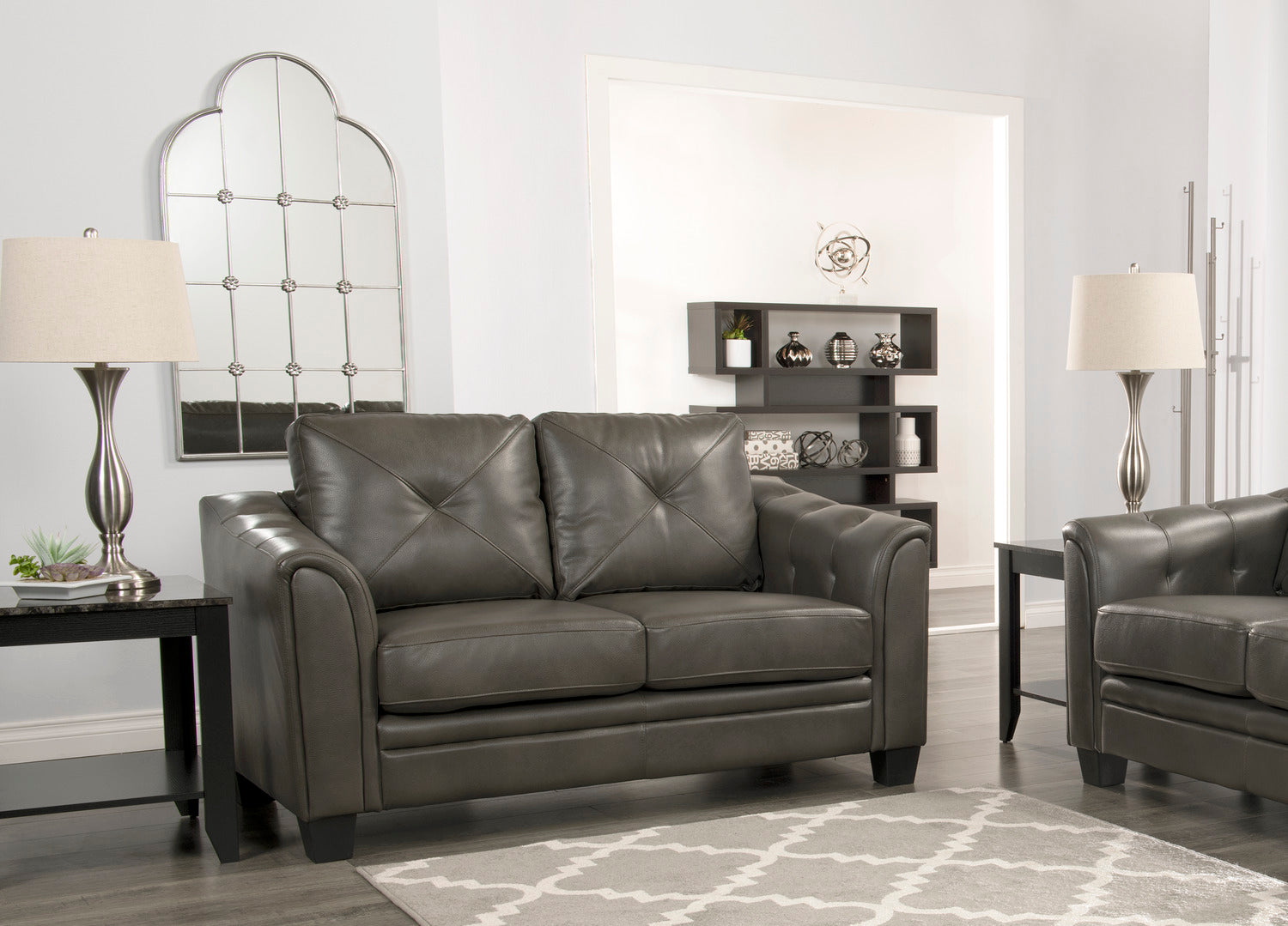 Get ready to enjoy chic comfort in your home with this Andi loveseat. Featuring button-tufting on the low-profile armrests and back cushions, this stylish design is a welcoming sight to behold. Breathable leather-look fabric makes this piece adaptable to any temperature while also adding a contemporary touch to this elegant piece. Finally, high-density foam is wrapped in thick fibre batting to ensure each cushion is plump and cozy whenever you need a breather.