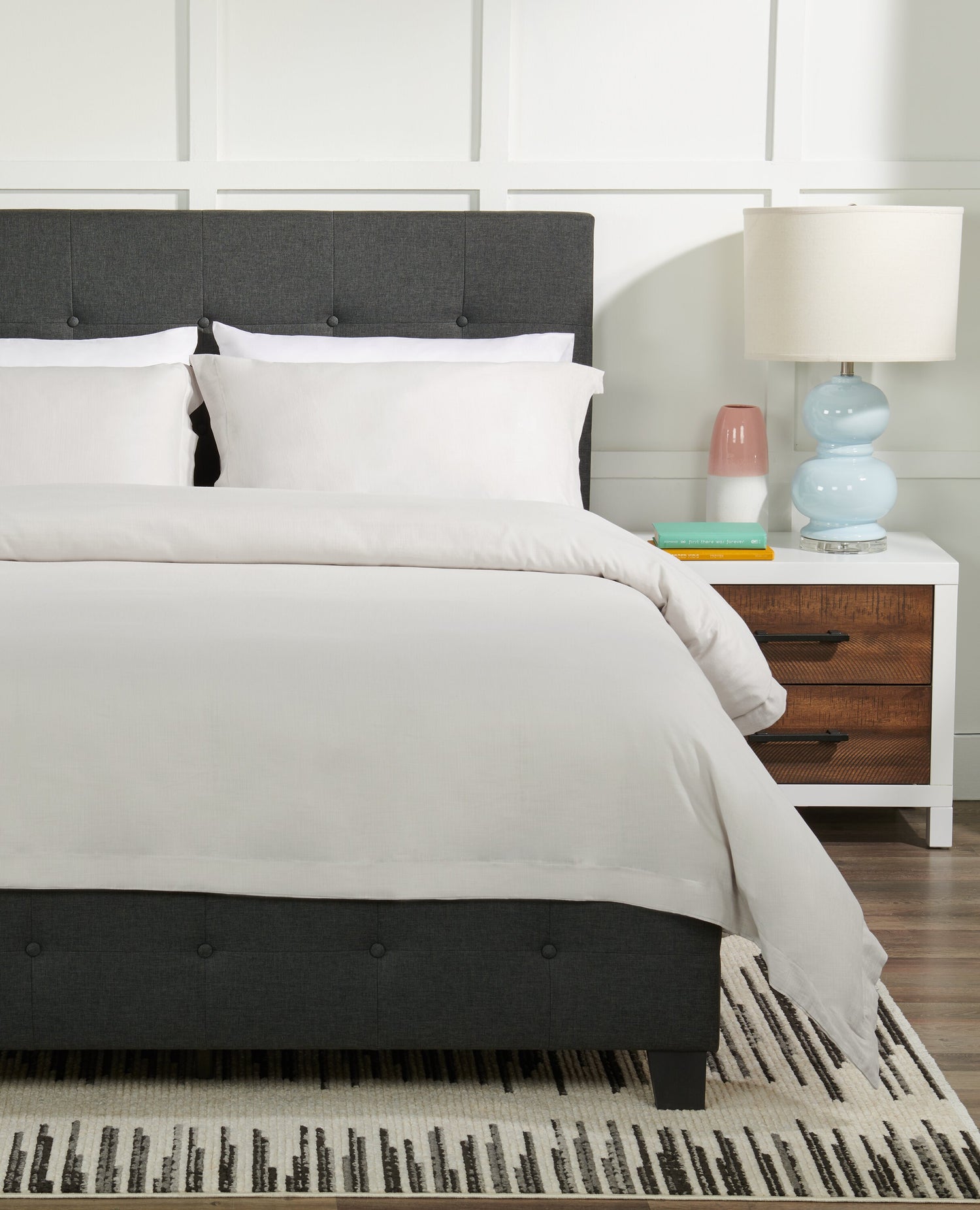 | Fabric | Linen-Look Fabric, Cotton Woven to look and feel like real linen, this man-made fabric provides a friendly touch to your space. Linen-look fabric is durable, easy to maintain and resistant to stretching. Naturally soft and comfortable, cotton fabric can be found in every aspect of our lives. It can be woven into a variety of looks and colours, making cotton a versatile choice for bedding. |