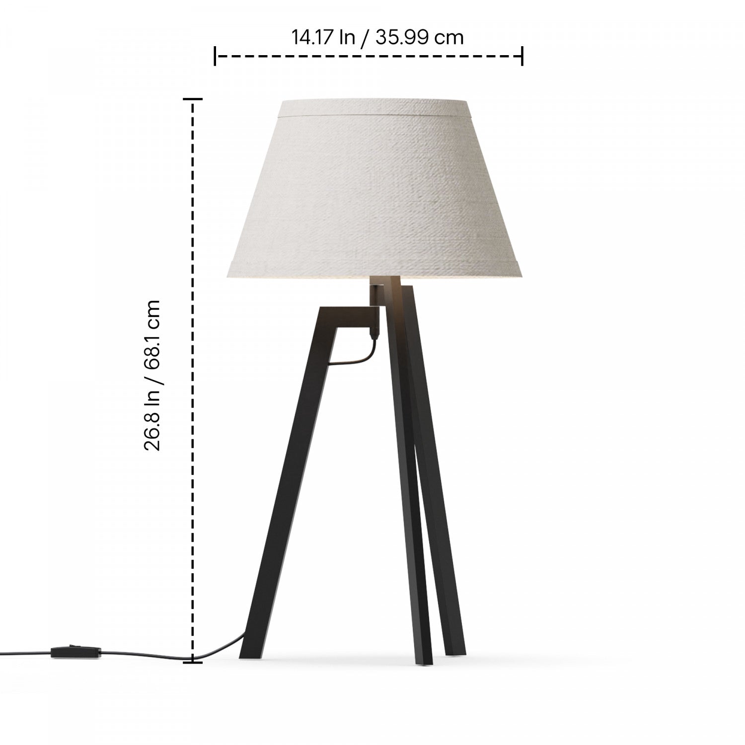 Echoing the design of its floor lamp counterpart, the table lamp features the same architectural tripod base, providing a cohesive look. The e26 bulb compatibility ensures versatile lighting options, while the textured shade gently diffuses light to create a warm, inviting ambience on any desk or table. Its compact size and striking form make it an ideal choice for spaces that blend modern aesthetics with practicality.