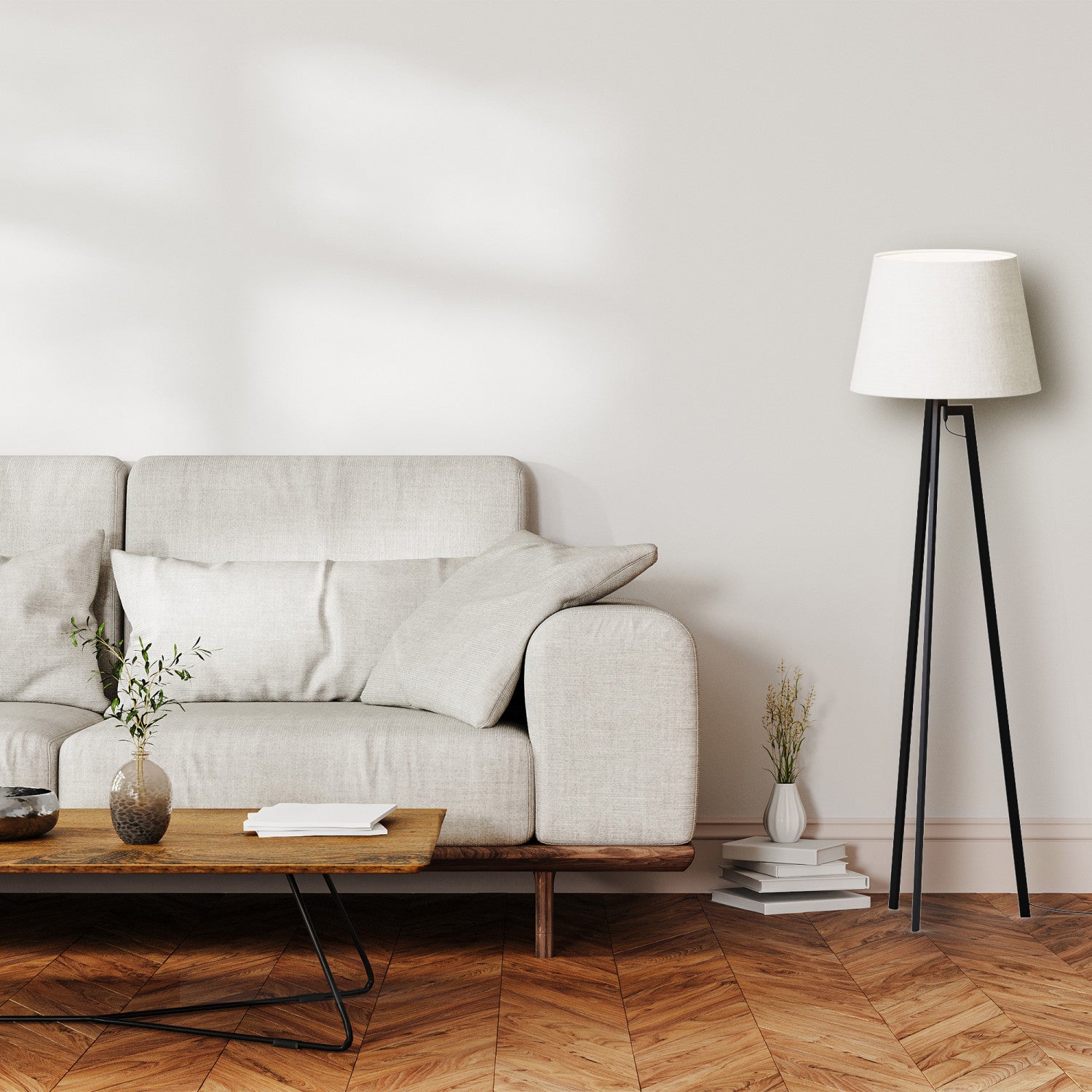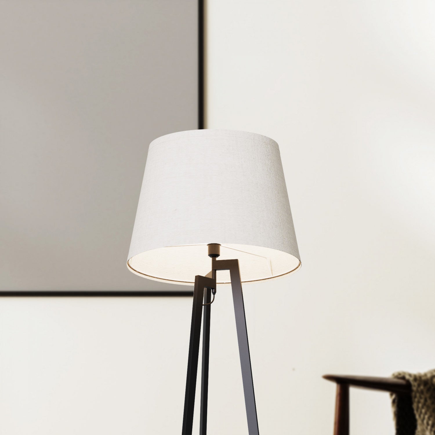 The floor lamp boasts architectural tripod legs that create a bold silhouette, marrying modern design with classic functionality. The lamp is designed for e26 bulb compatibility, offering flexibility in your lighting choices. Its textured shade emits a warm and cozy glow, enhancing the ambiance of any living space. Whether placed in a contemporary setting or a more traditional decor, this lamp is a striking addition that provides both aesthetic appeal and practical illumination.