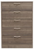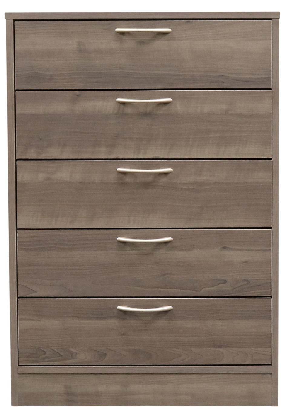 Add a contemporary upgrade to your bedroom with this distinctive Arlo chest. The clean lines of the frame design and contrasting nickel-coloured handles bring modern sophistication to your space. Pull open one of the five deep drawers to keep your clothes or blankets close at hand, and self-closing glides allow them to gently snap back to the closed position when you’re done. Engineered wood gives you the best of both style and affordability, so rest easy knowing this Arlo chest will be your bedroom storage piece de résistance.