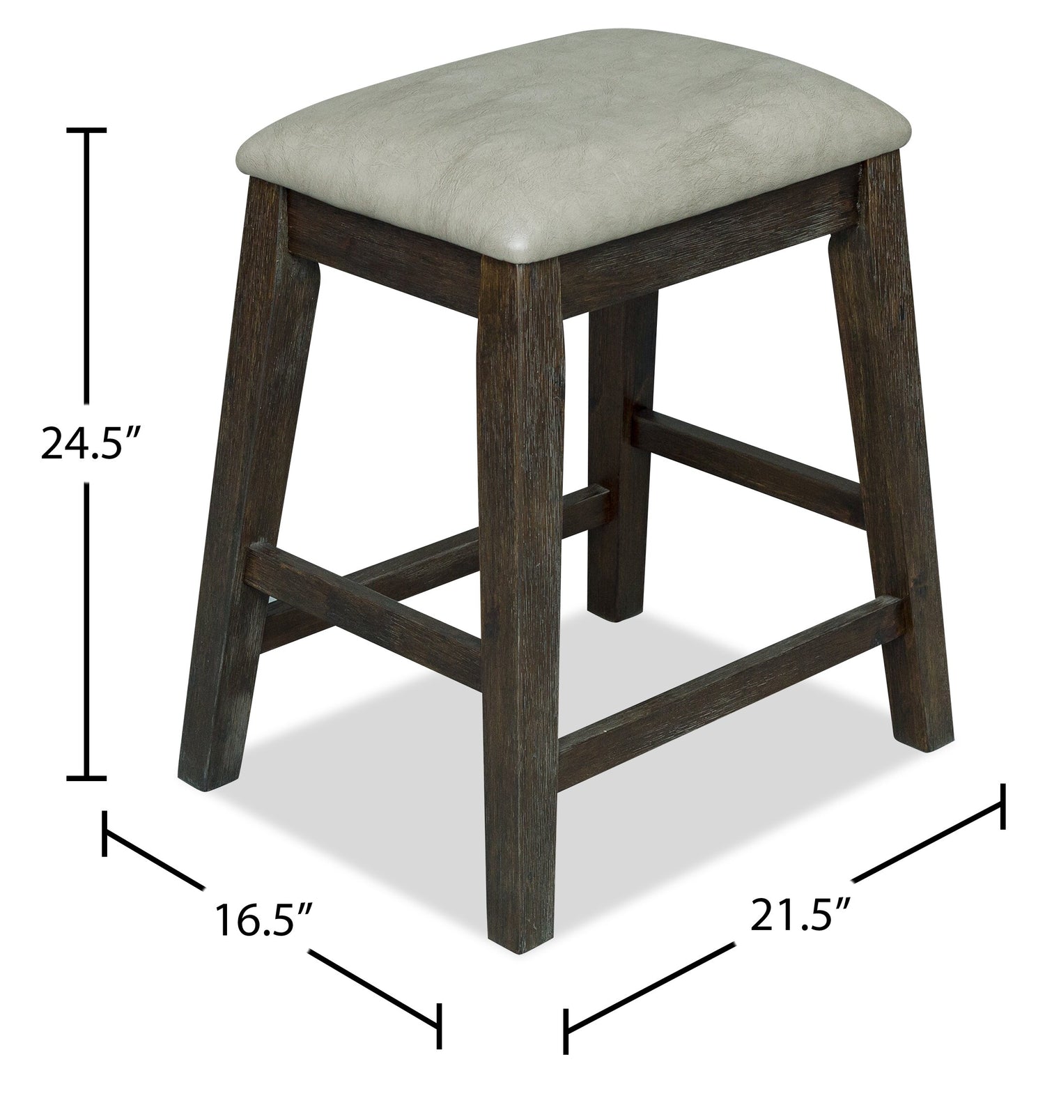 Enjoy the high life with this Astoria counter-height dining stool. Crafted with solid acacia wood and veneers, this backless stool's dark grey-brown finish adds a smoky, sophisticated allure to your home. The clean lines of this design offer an attractive profile, from the tapered legs to the soft grey faux leather seat. Packed with comfortable high-density foam, this smooth and easy-to-clean seat is a destination for relaxation.