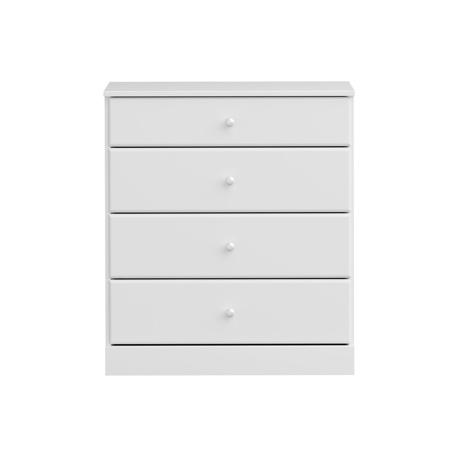 Add a classic, simple, storage solution to your bedroom with the Astrid 4-Drawer Chest. It's contemporary design and clean lines will complement any decor. Profiled drawer fronts and solid wood knobs help provide a timeless look. Use on its own or pair it with other matching pieces from the Astrid Collection.