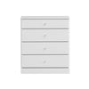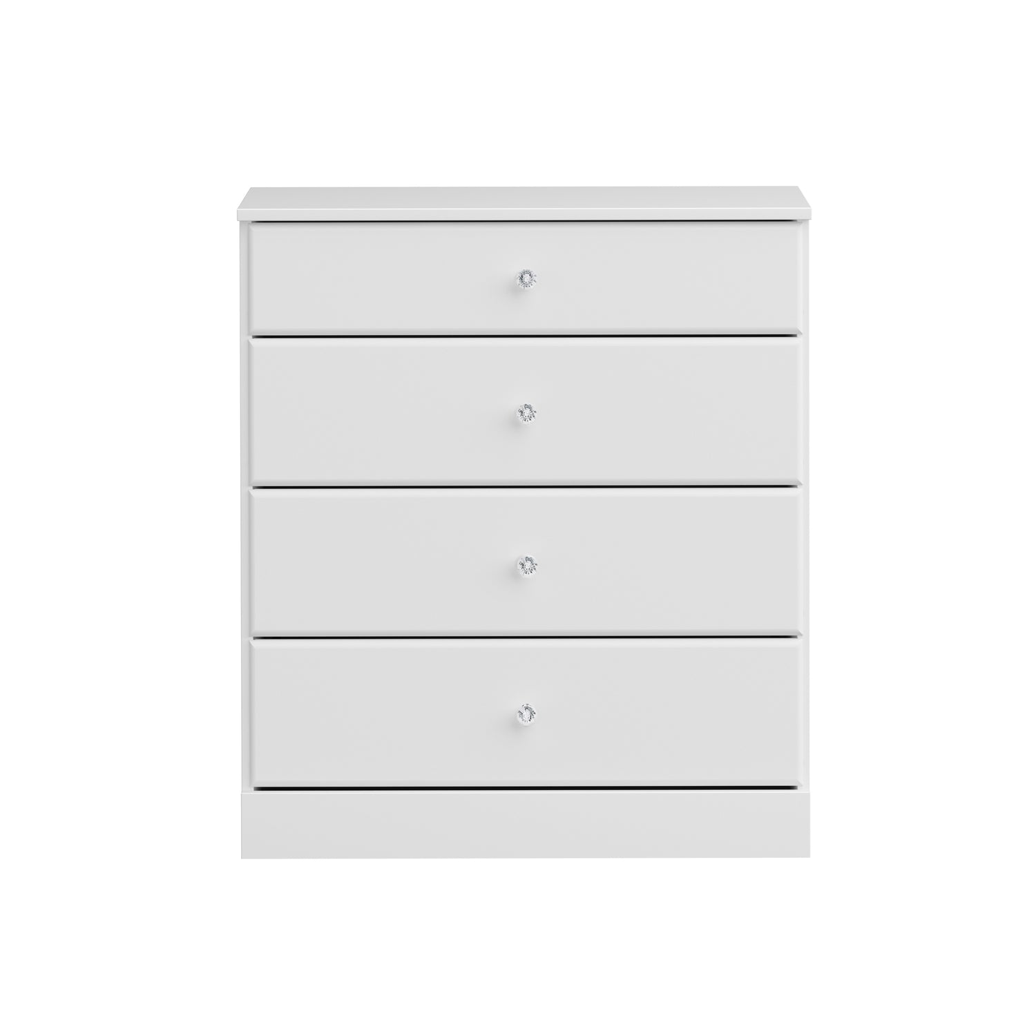 Add a classic, simple, storage solution to your bedroom with the Astrid 4-Drawer Chest with Crystal Knobs. It's contemporary design and clean lines will complement any decor. Profiled drawer fronts and acrylic crystal knobs add a beautifying touch. Use on its own or pair it with other matching pieces from the Astrid Collection.