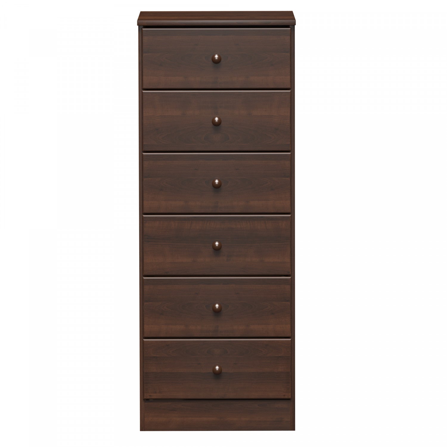 This Astrid 6-Drawer Tall Chest is your small space solution. It's contemporary design and clean lines will complement any decor. Profiled drawer fronts and solid wood knobs help provide a timeless look. Use on its own or pair it with other matching pieces from the Astrid Collection.