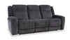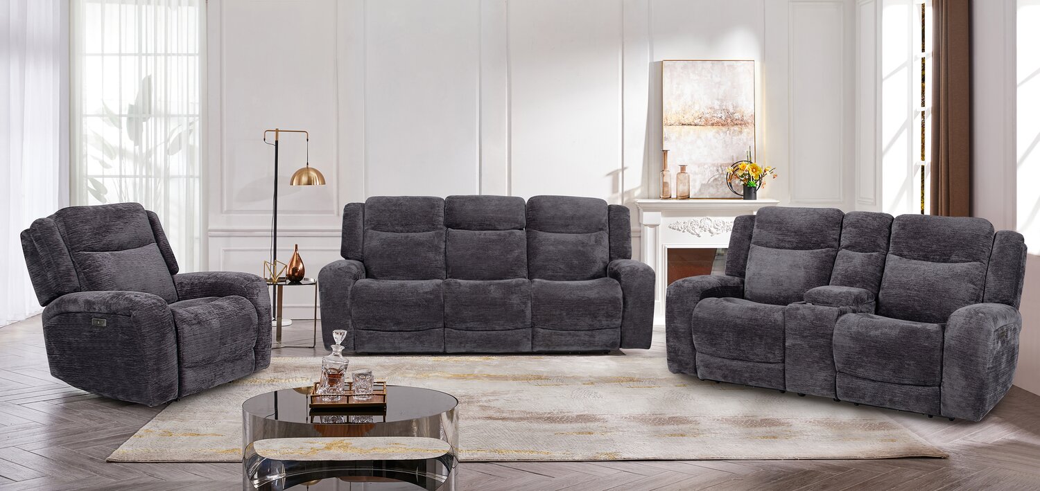 Large arms, cozy material and reclining options all come together in this Atlantis sofa. Perfect to curl up in or stretch out on, this piece offers up two power reclining seats and a middle seat for the whole family. Recline into a neutral position to experience optimal comfort and support with the zero-gravity feature. Plus, the dark grey tone won’t clash with any of your decor, meaning it will fit seamlessly into your home. Sink into the high-density foam cushions for luxurious comfort and recline in modern style with the Atlantis.