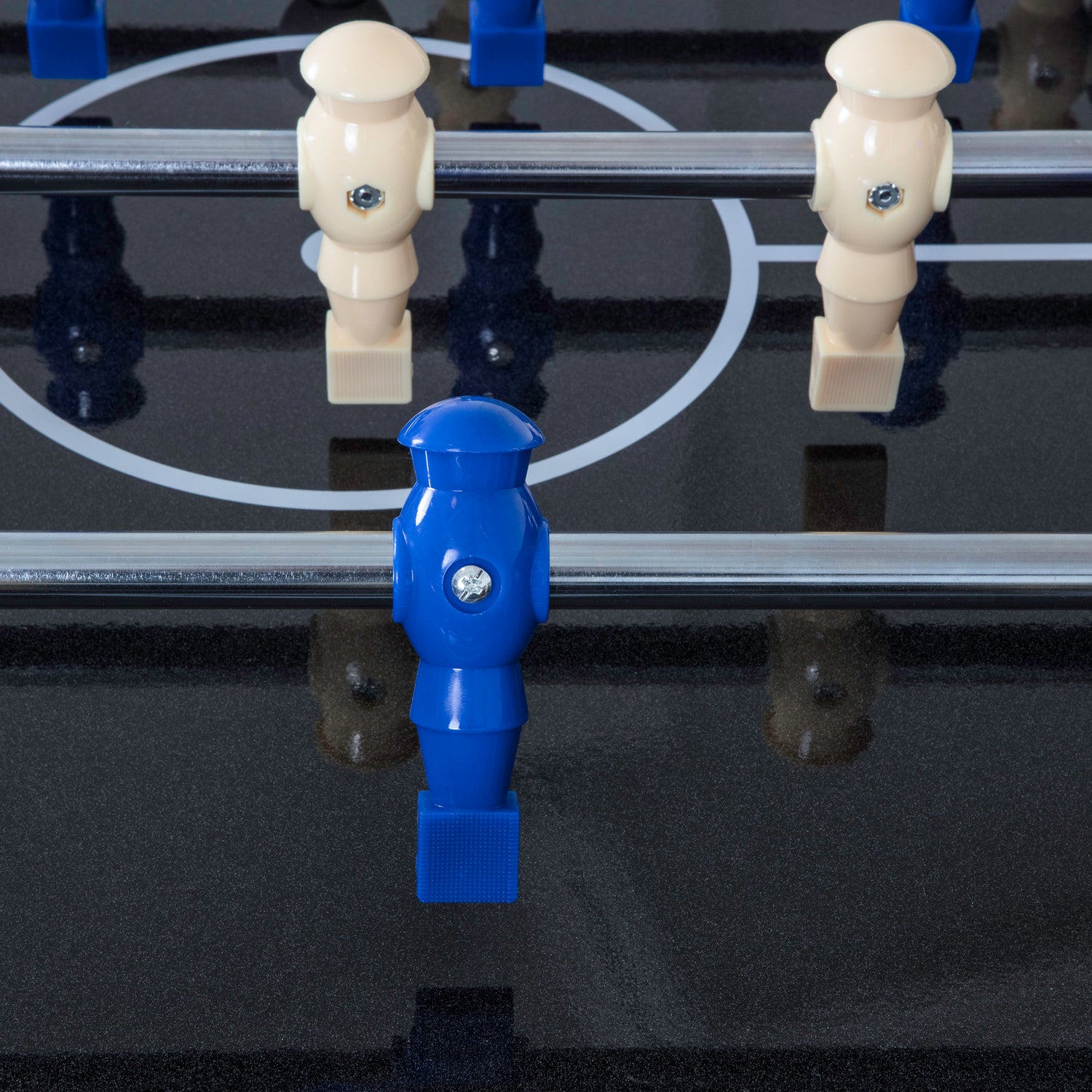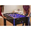 Lights out? Game on. Light up the night with the illuminating technology of the Azure LED Light Up Foosball Table. The fully lighted table provides a magical foosball experience as the centerpiece in your game room or basement. The Azure LED table features interactive inrail blue LED lighting with cascading effects paired with in-game music. To enhance the in-the-dark play experience, both the foosball and goal boxes light up with blue illuminating exterior legs. The durable arcade game table features a 47" x 27" play field and 15.8mm steel player rods and built-in automatic electronic scoring to keep track of the action.