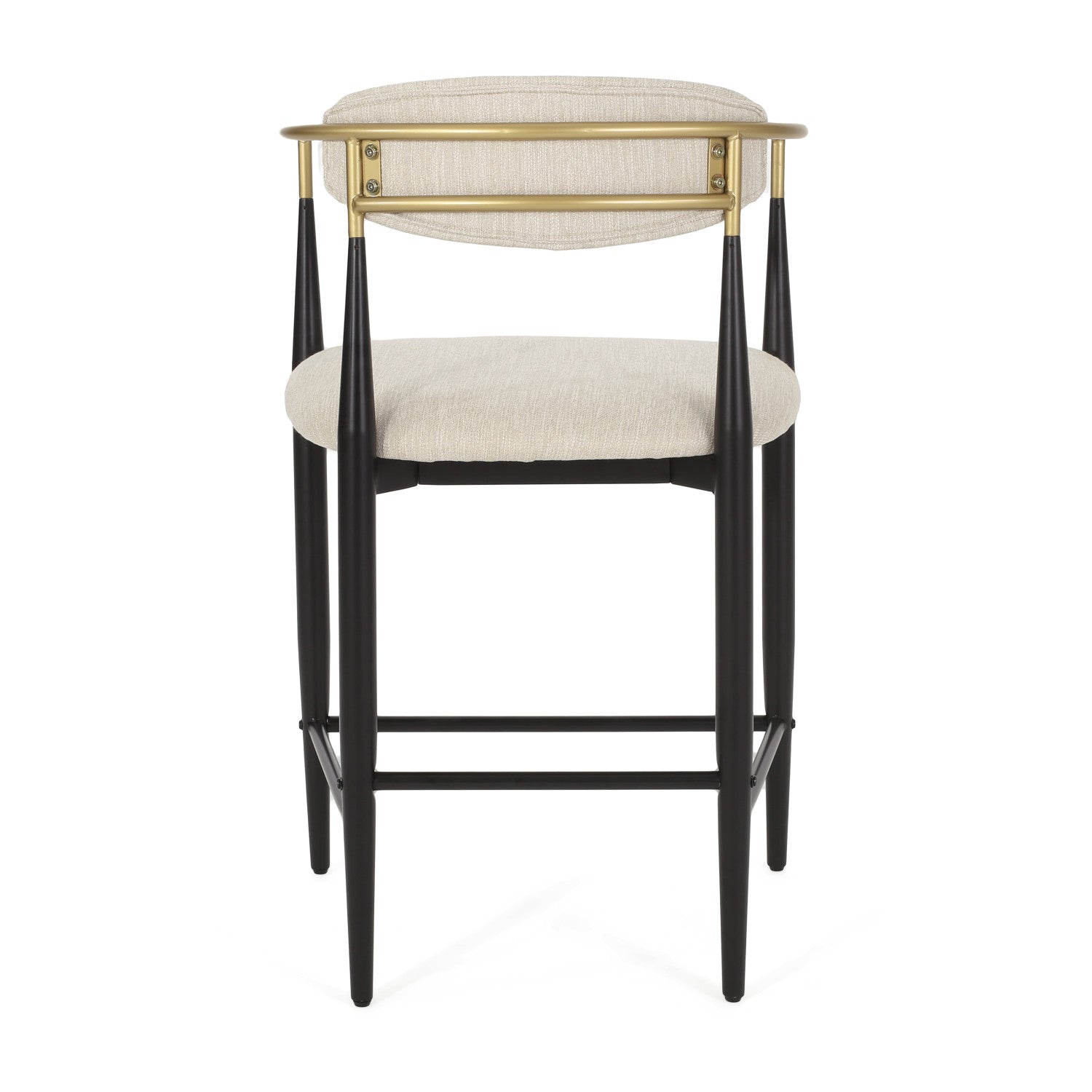 Elevate your kitchen or dining space with the counter stool set. Featuring a sleek modern design, each stool showcases an open backrest, slim black iron legs, and elegant gold accents. The beige upholstered seat is generously cushioned with foam for exceptional comfort. Crafted for durability and style, this set of two is perfect for casual dining or entertaining at your counter-height table or kitchen island. With clean lines and contemporary flair, aubrey brings sophistication and everyday function to any modern home.