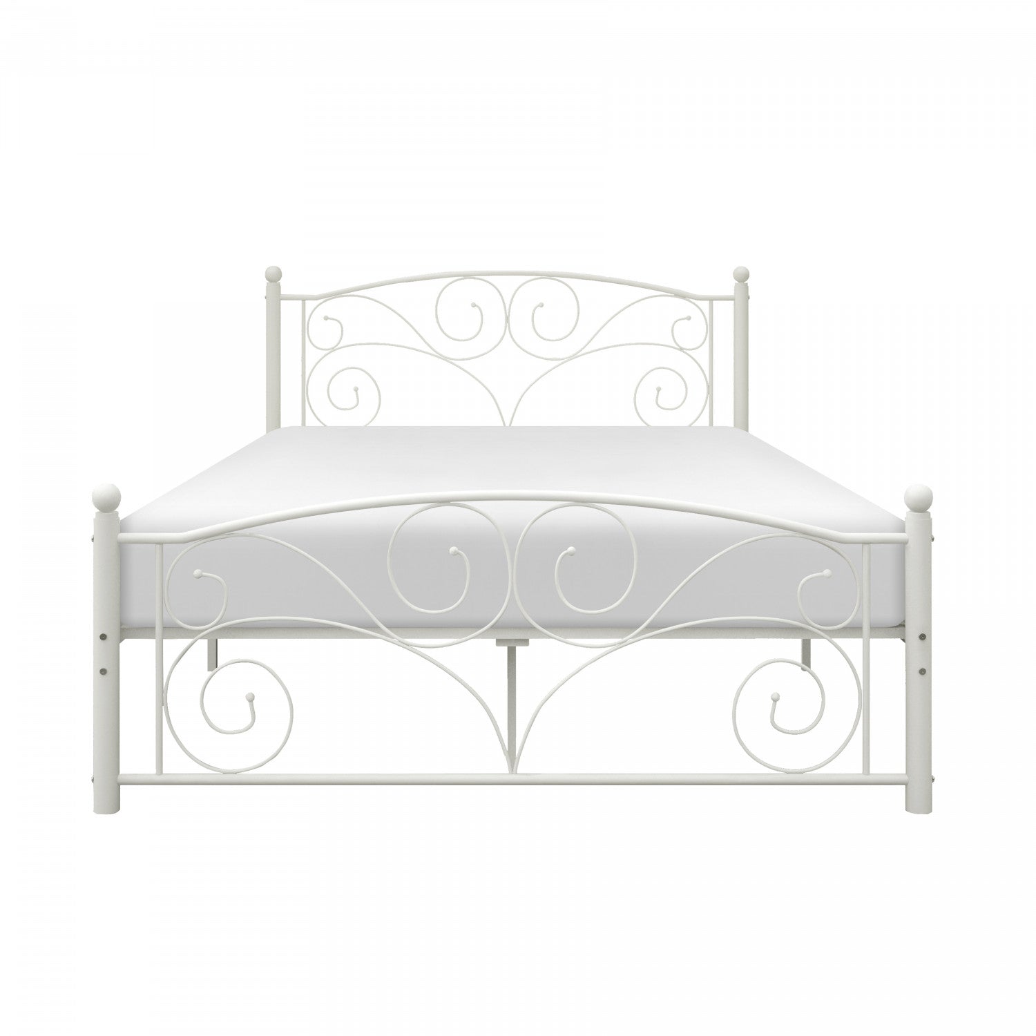 Marvelously at home in a child’s or spare bedroom, the Avaly Full Bed is a stylish addition to your home. Crafted in metal with a chic white powder coating, this whimsical retro design has decorative scroll-work and ball finials to give both the headboard and footboard a refined look that will pair beautifully with a number of room styles. The platform metal slat system requires only a mattress for your bedtime experience to be complete.