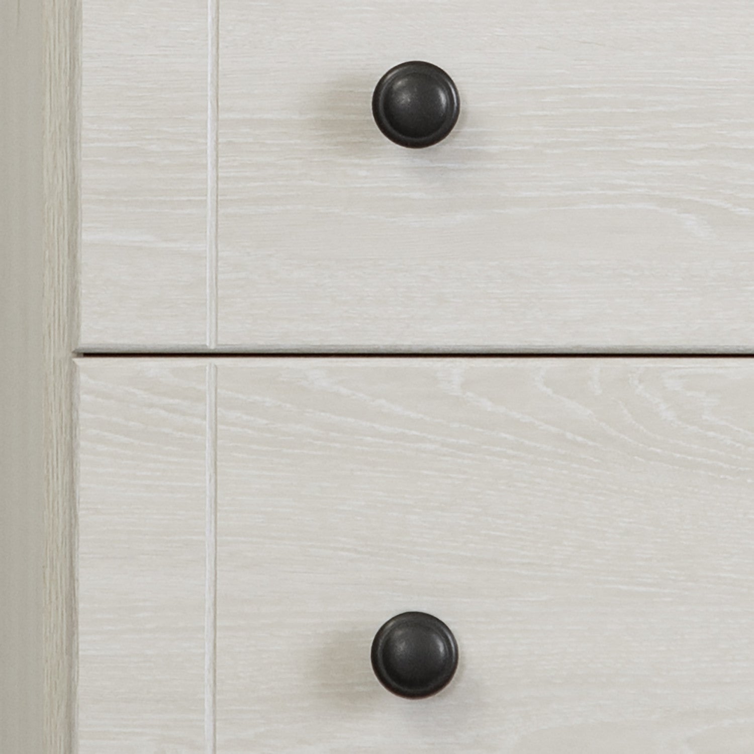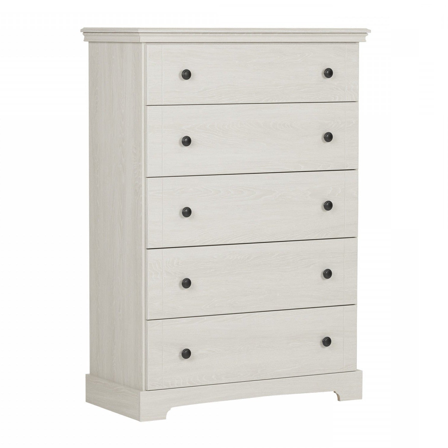 Designed to stand out, this dresser features clean lines, a decorative footboard, and elegant metal knobs, two on each drawer for easy use. With it's small footprint, this dresser is the perfect solution for anyone with limited space, looking for additional storage.