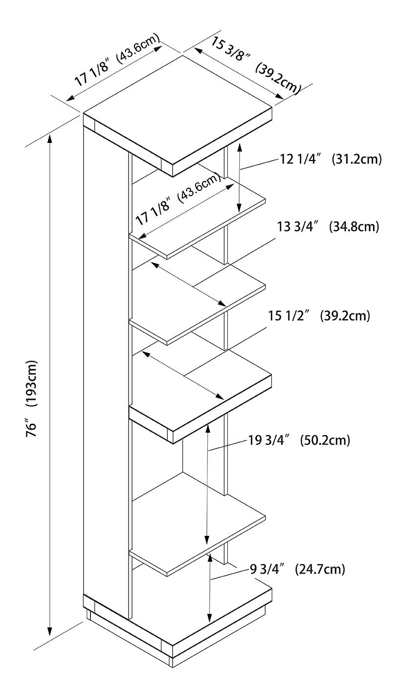 Width: 17.16" (43.6 cm) Height: 76" (193.0 cm) Depth: 15.4" (39.1 cm)