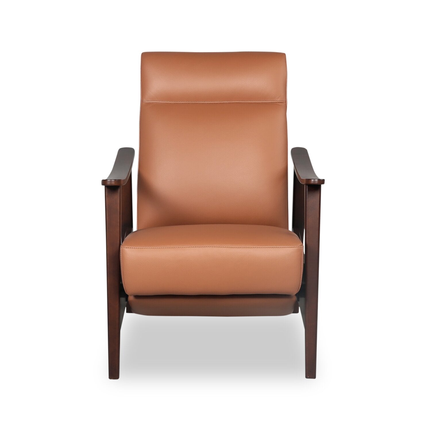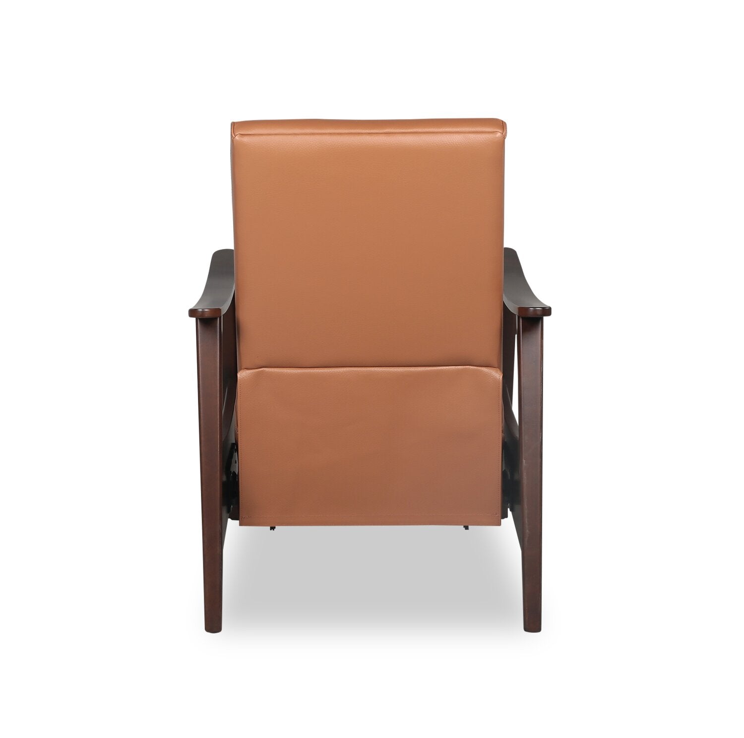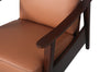 | Accent Details | Wooden curved armrests paired with the smooth orange genuine leather give this piece a luxurious vibe. |
