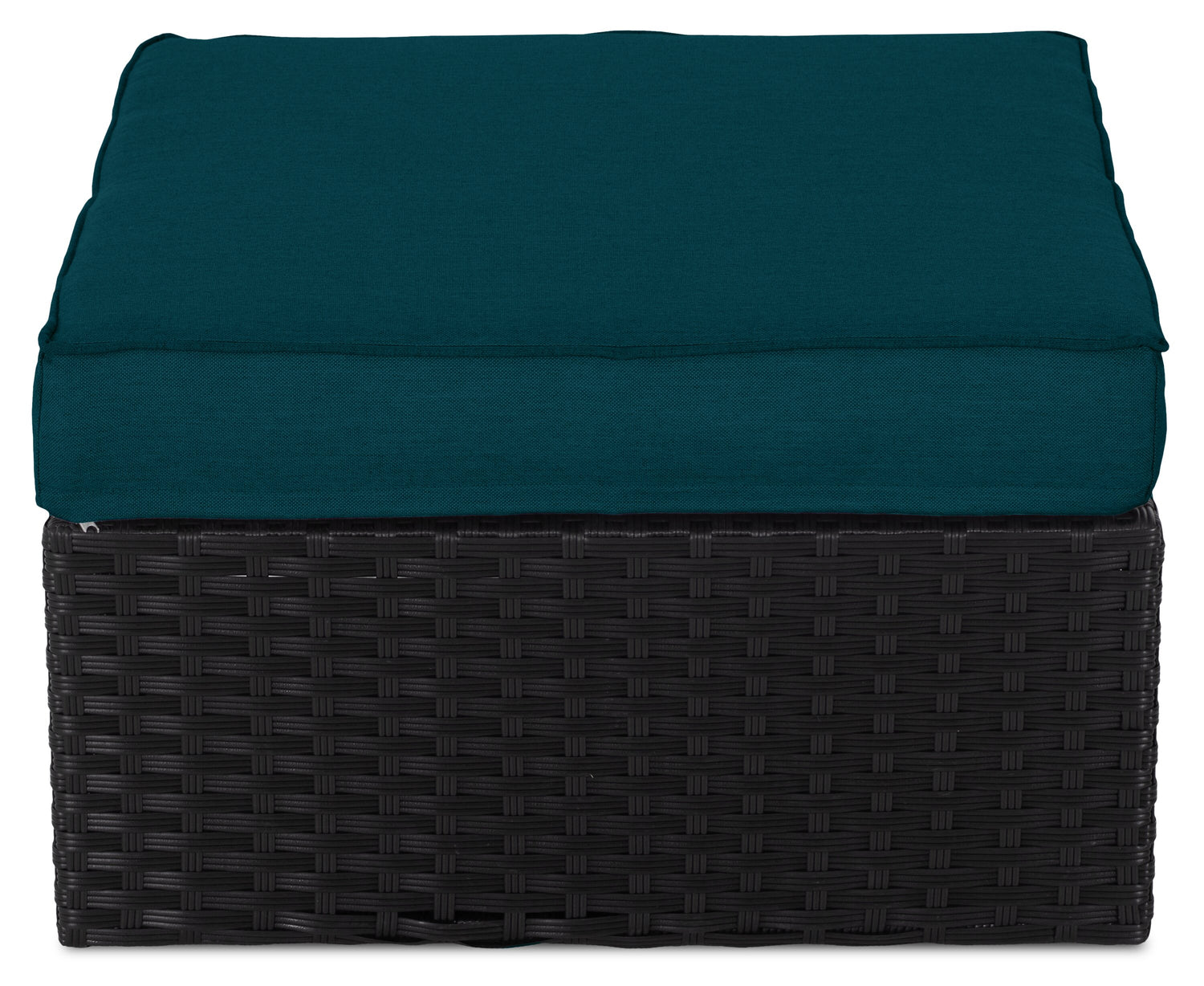 Barbados Outdoor Patio Ottoman - Hand-Woven Resin Wicker, UV & Weather Resistant - Black/Blue
